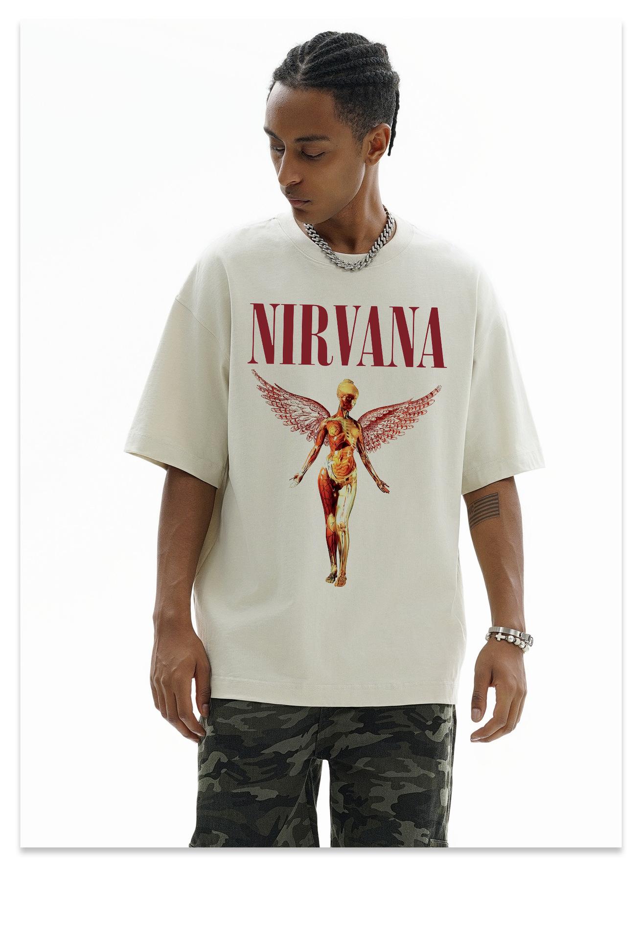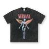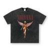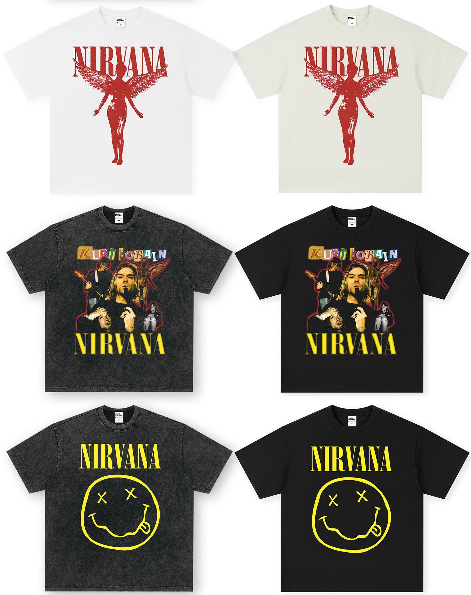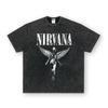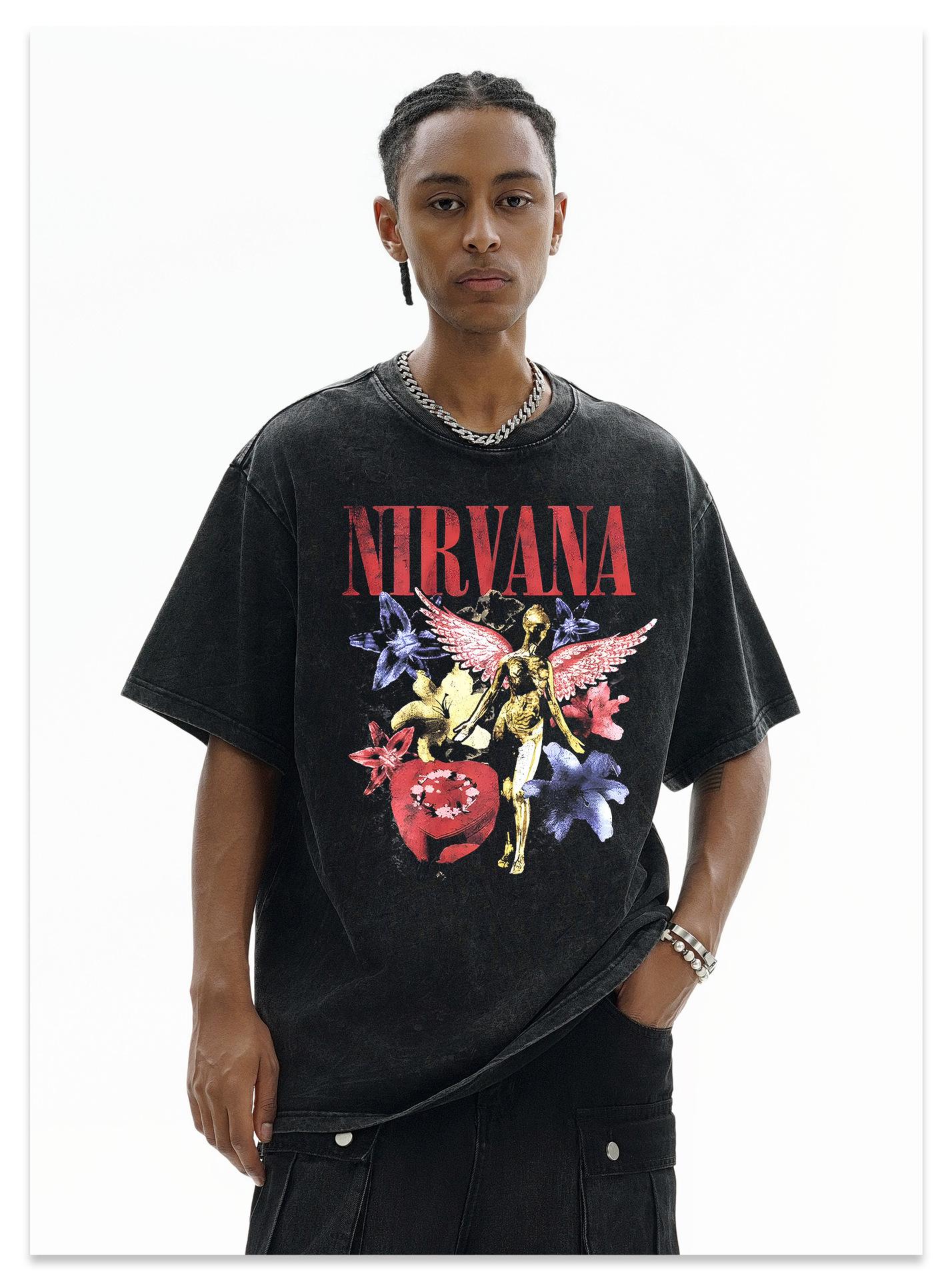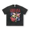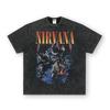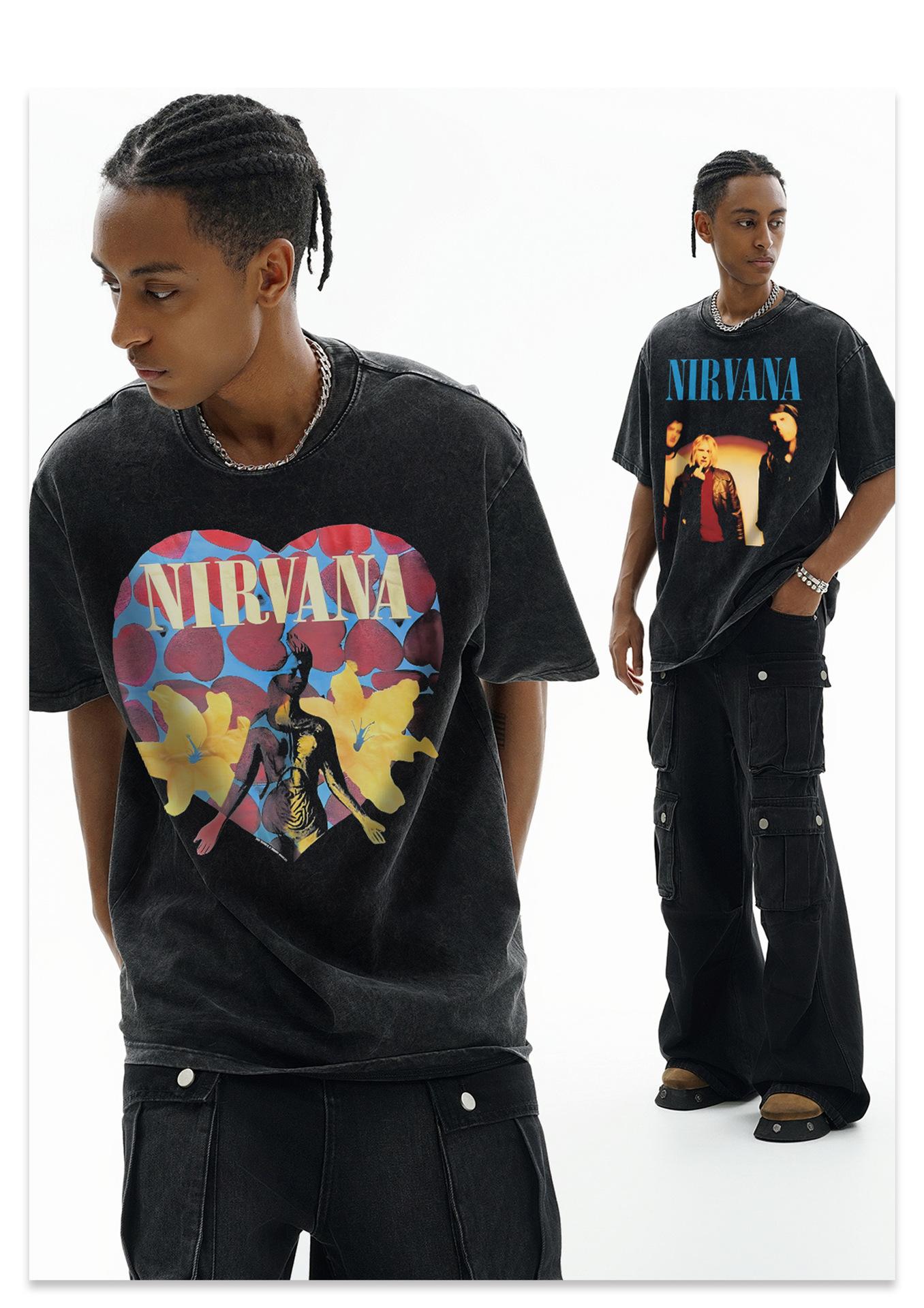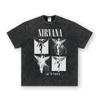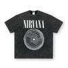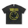 Camiseta de manga corta NIRVANA Rock American Retro, lavada, con estampado transfronterizo pesado, estilo americano, de puro algodón vintage para hombre