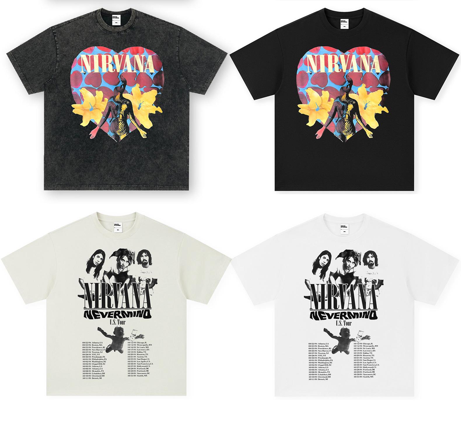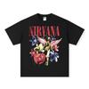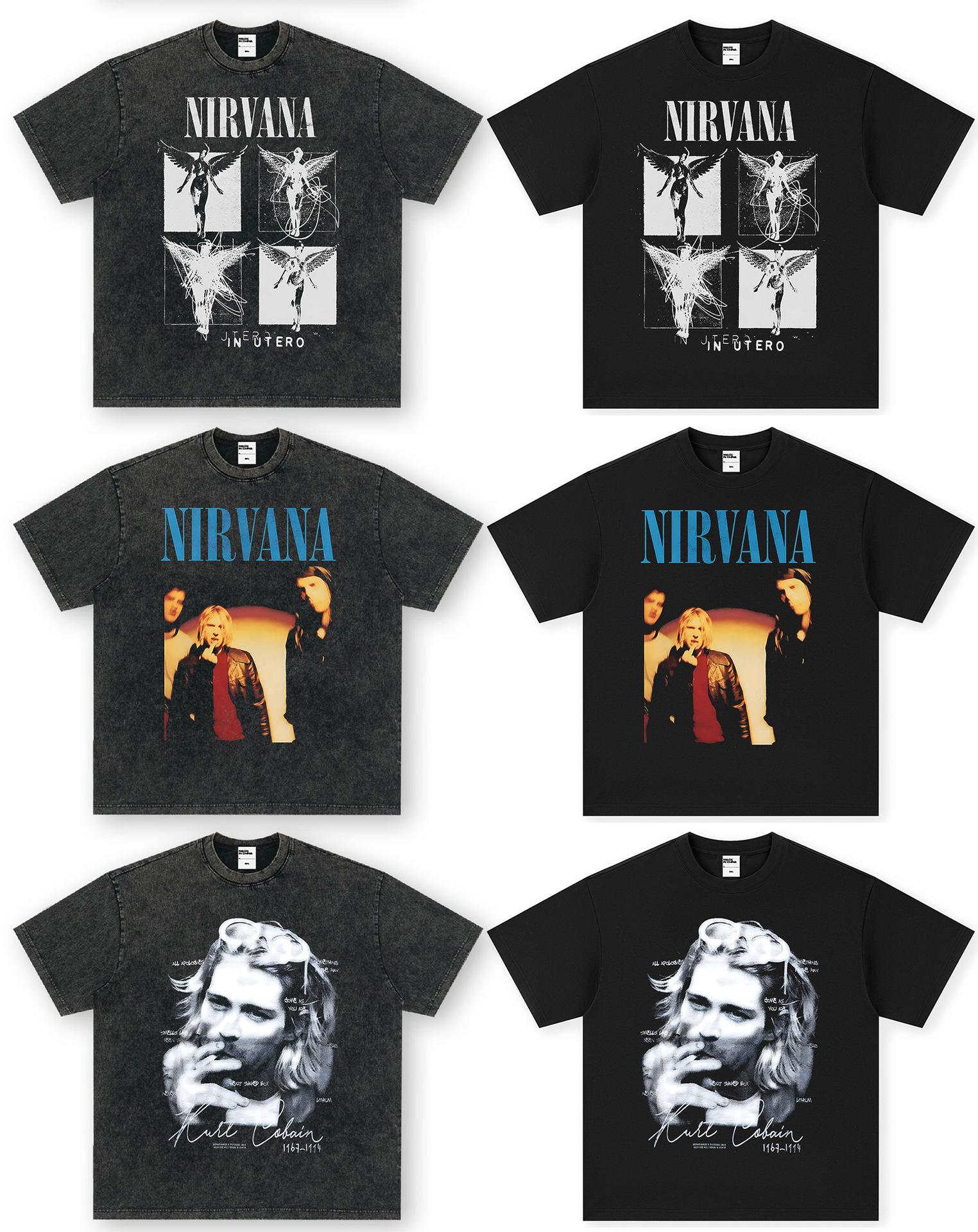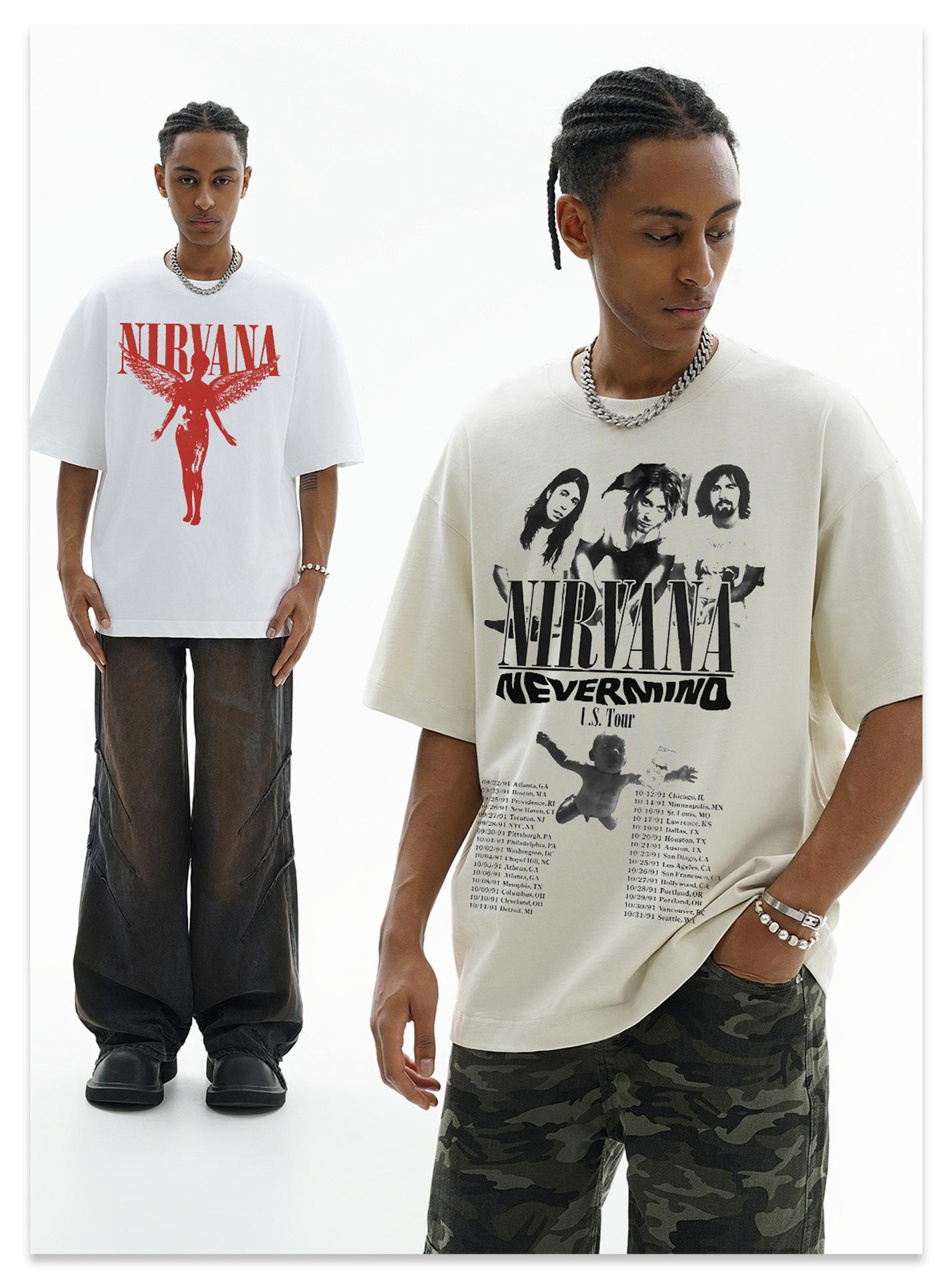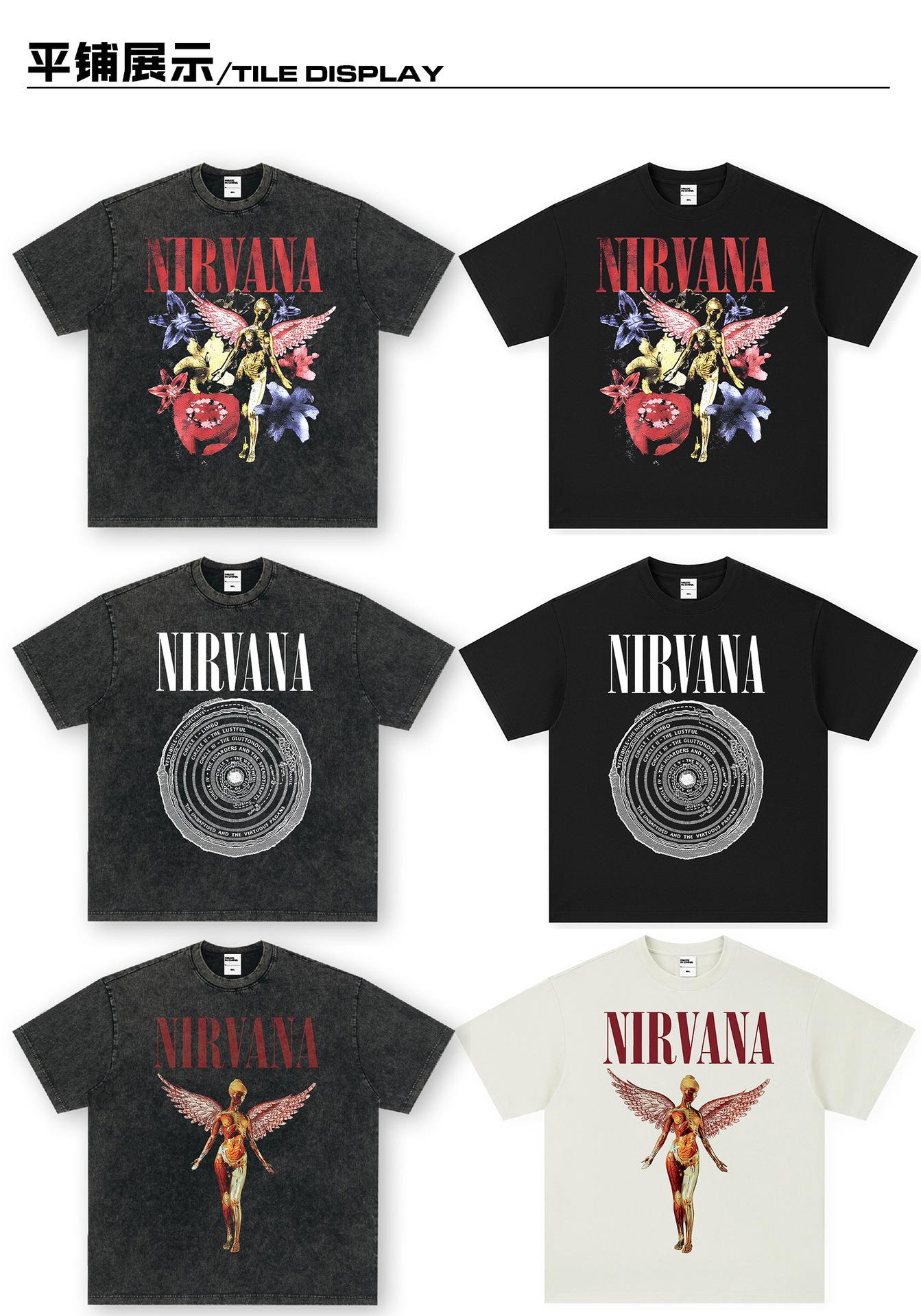 Camiseta de manga corta NIRVANA Rock American Retro, lavada, con estampado transfronterizo pesado, estilo americano, de puro algodón vintage para hombre