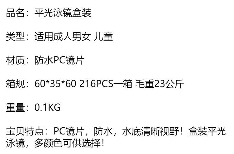 Gafas de natación impermeables antivaho directas de fábrica unisex gafas de natación al por mayor luz plana multicolor opcional soporte lote mixto