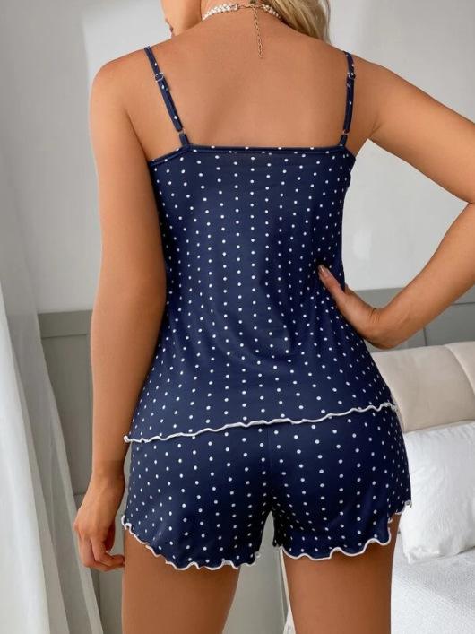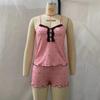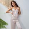 Pijama nuevo de cuello en V para mujer de comercio exterior europeo y americano, pantalones cortos cómodos con tirantes y botones para el hogar, traje de seda color leche