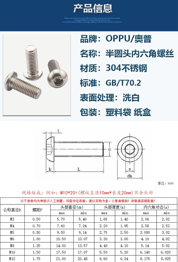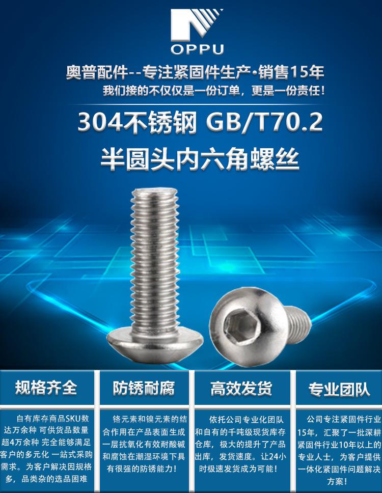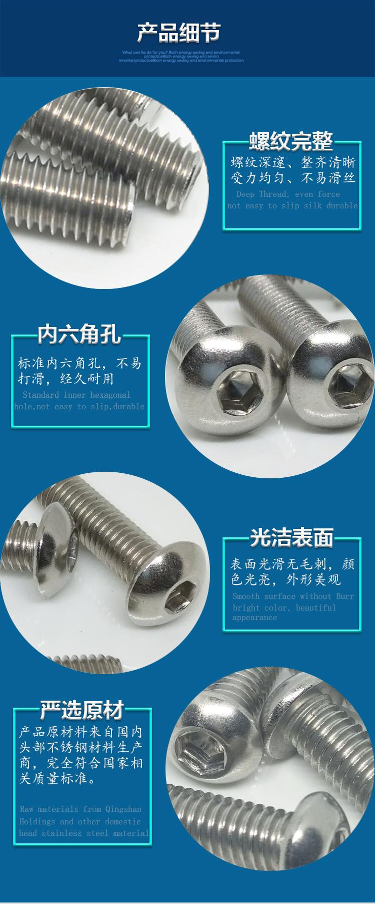 Tornillo de cabeza redonda hexagonal de acero inoxidable 304 GB70.2 Tornillo de cabeza redonda con copa redonda Tornillo de cabeza plana hexagonal de acero inoxidable 304