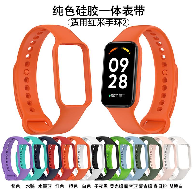 Correa de silicona compatible con la pulsera Red Mi 2, repuesto de pulsera con protección integrada de TPU monocromática suave para Redmi Band2.