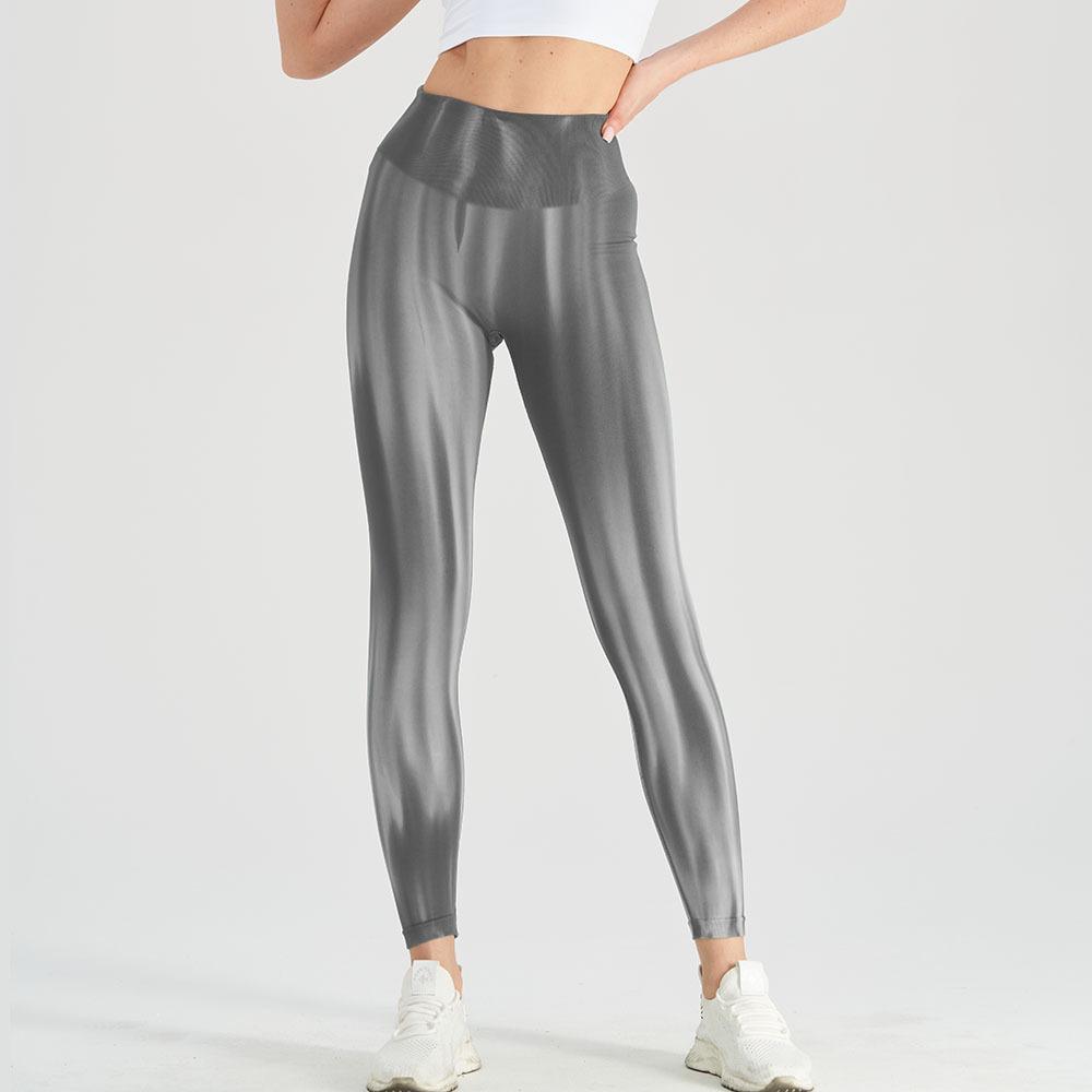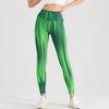Pantalones de yoga sin costuras color melocotón para cadera, cintura alta, pantalones deportivos ajustados a rayas huecas, leggings deportivos transpirables que absorben el sudor para mujer