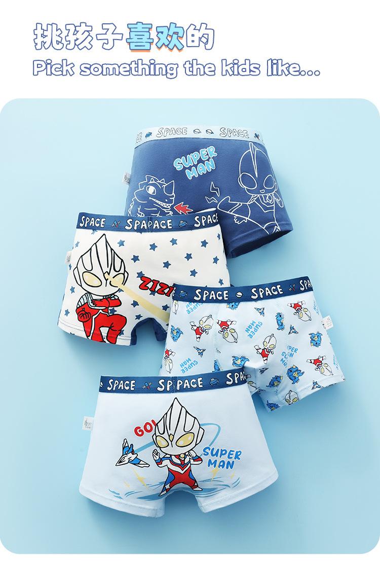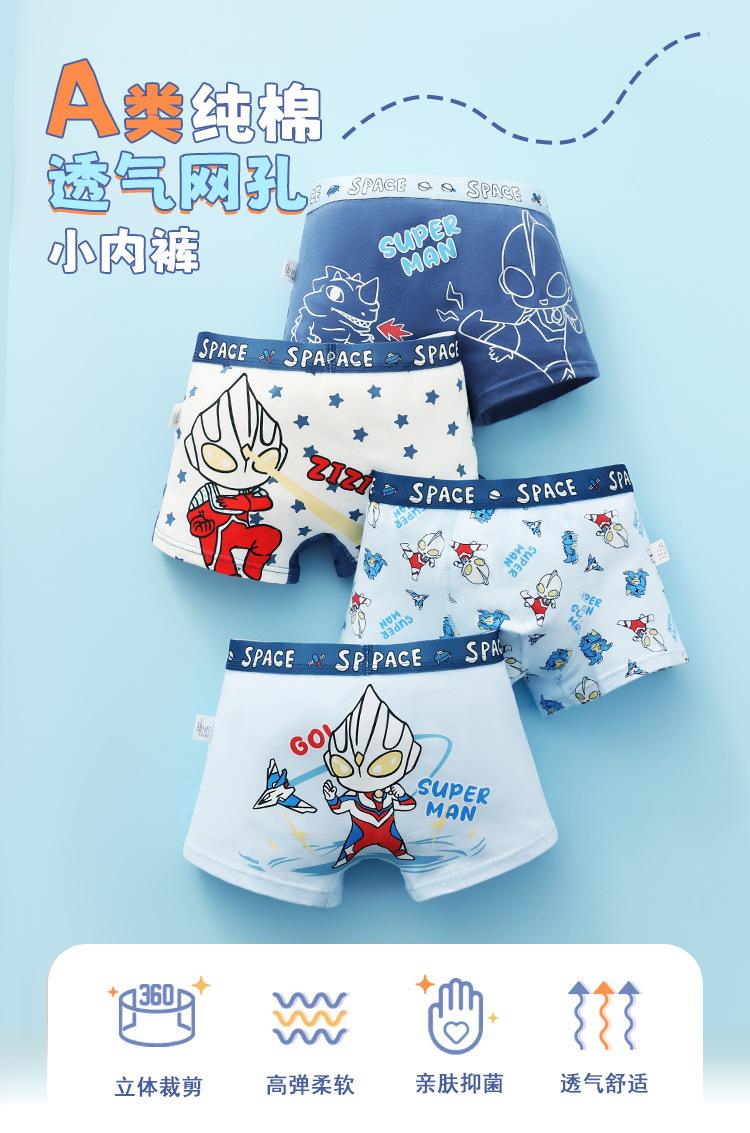 Calzoncillos bóxer de algodón puro para niños, calzoncillos bóxer transpirables de verano con dibujos de Ultraman para bebés de tallas pequeñas y medianas.