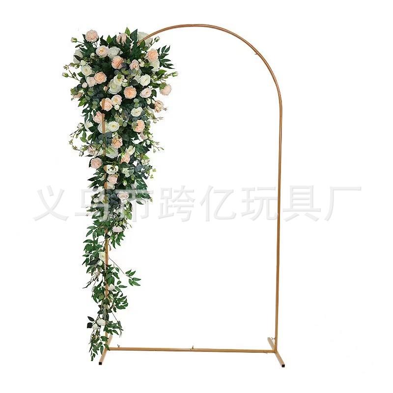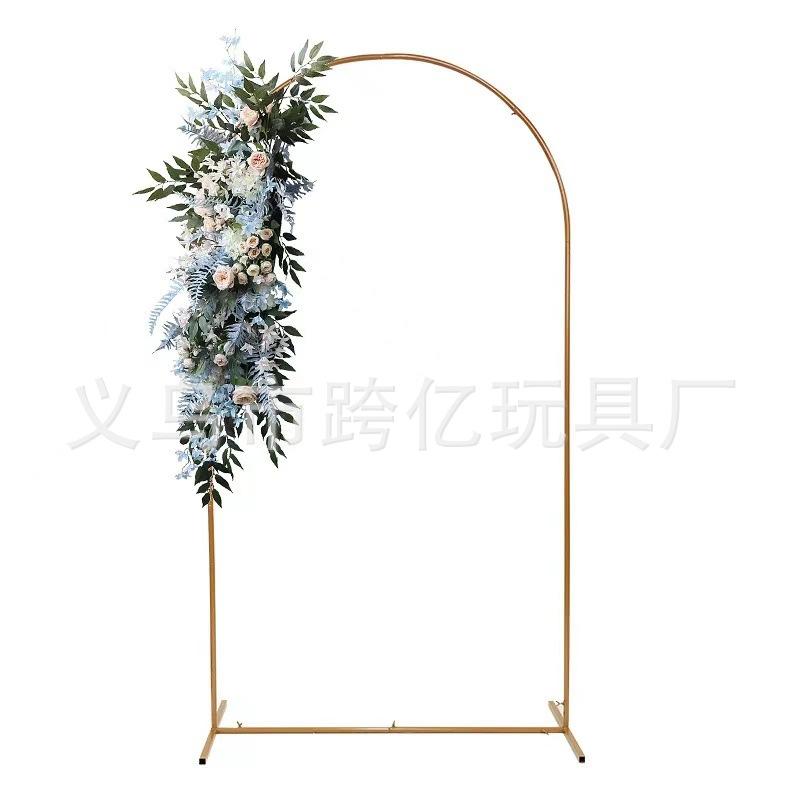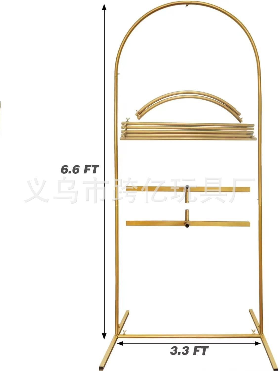 Venta caliente transfronteriza: Marco de arco de hierro dorado de 2,2 m, soporte para globo de camino de boda, fondo de fotografía con altas montañas y agua fluyente.