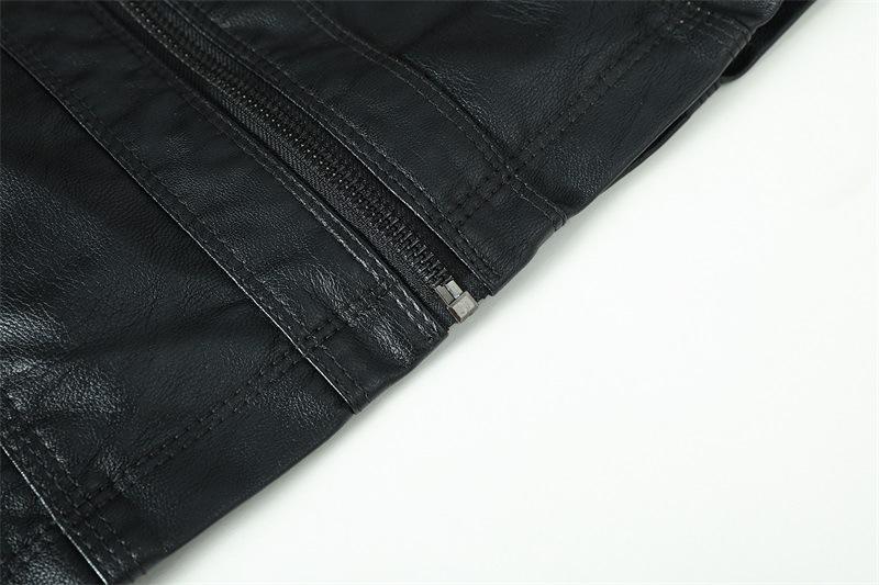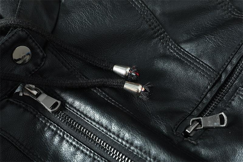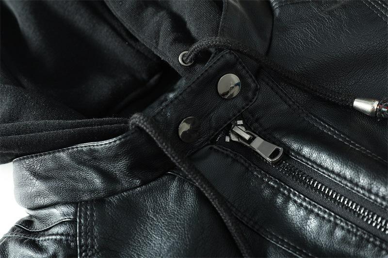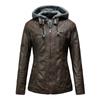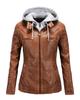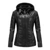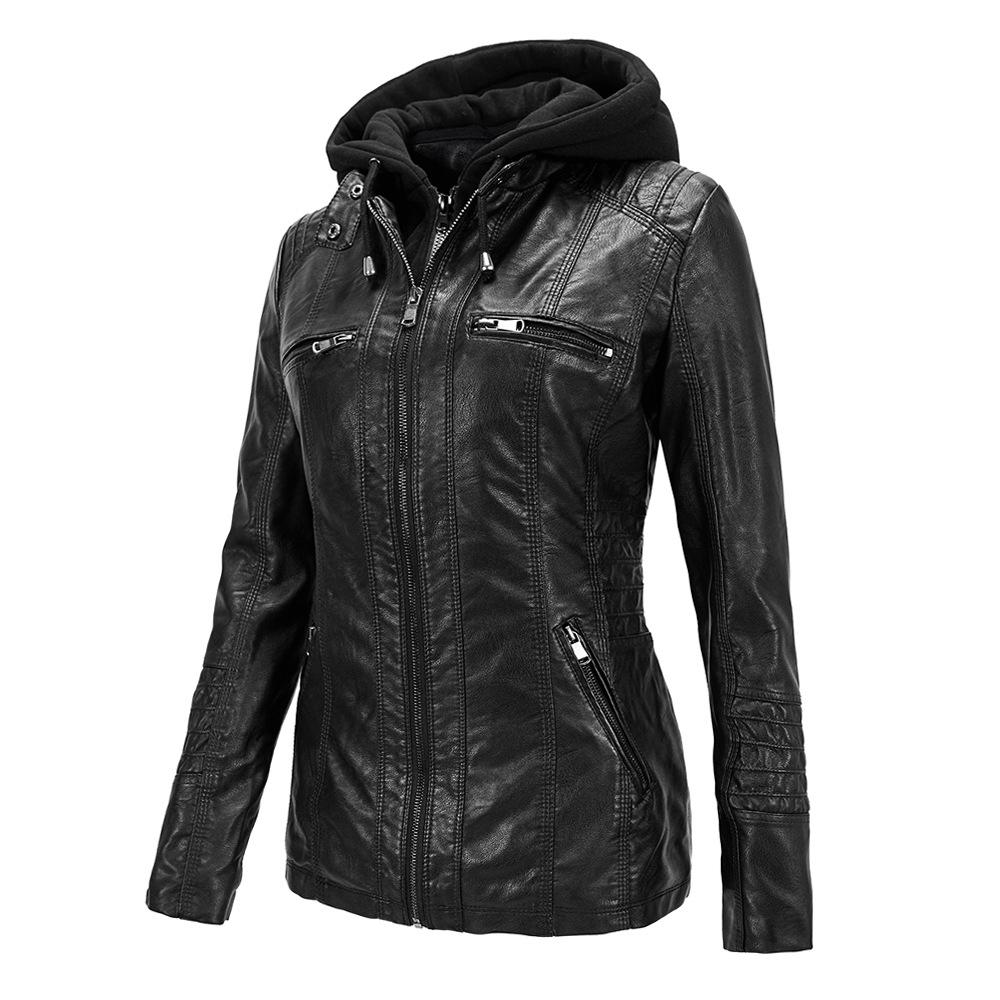 Chaqueta de motociclista de cuero de manga larga para mujer, de Amazon, estilo europeo y americano, de cuero sintético, corta, con capucha extraíble y corte ajustado.