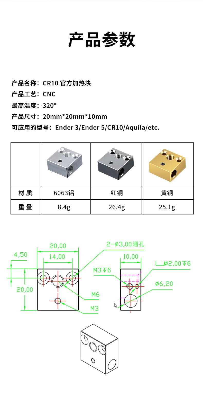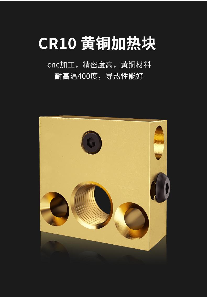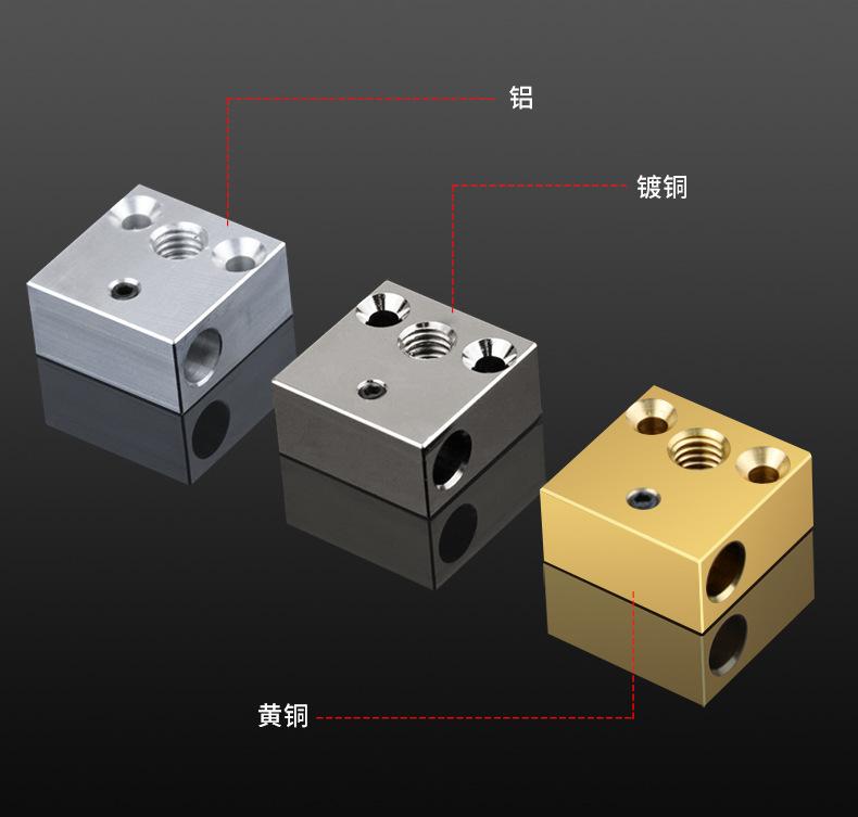 CR10 CNC aluminum heating block, CR10 brass heating block, CR10 copper-plated heating block
