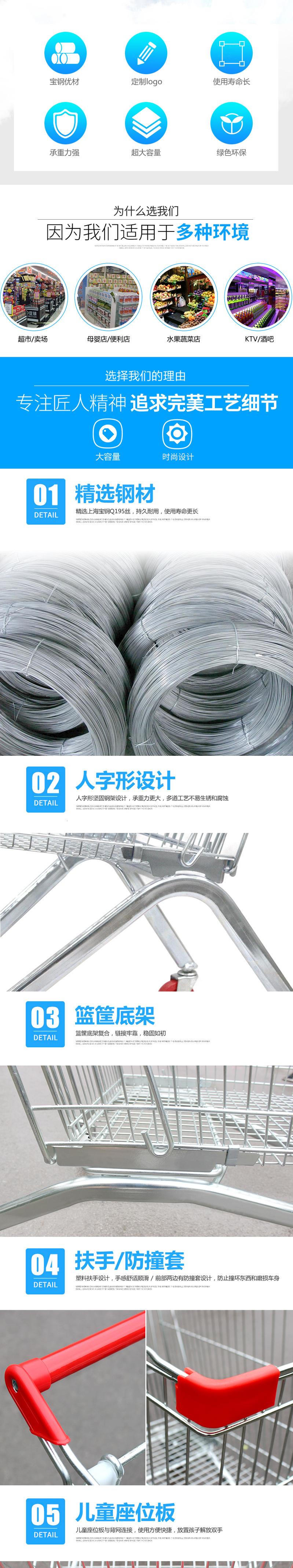 Rueda de elevador silenciosa carrito de compras de supermercado con asiento para niños centro comercial tienda departamental tienda de conveniencia carrito de metal LOGO