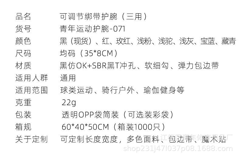 Fabricamos regularmente una variedad de muñequeras de punto, de neopreno y de presión. Aceptamos muestras. Ofrecemos todo tipo de personalización.