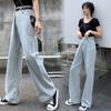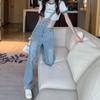 Pantalones vaqueros de pierna ancha adelgazantes de cintura alta para mujer 2022 nuevos pantalones de color claro simples de verano y otoño pantalones rectos ajustados capri