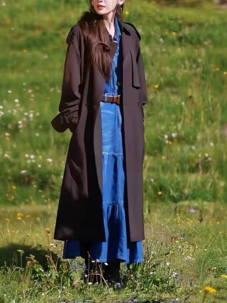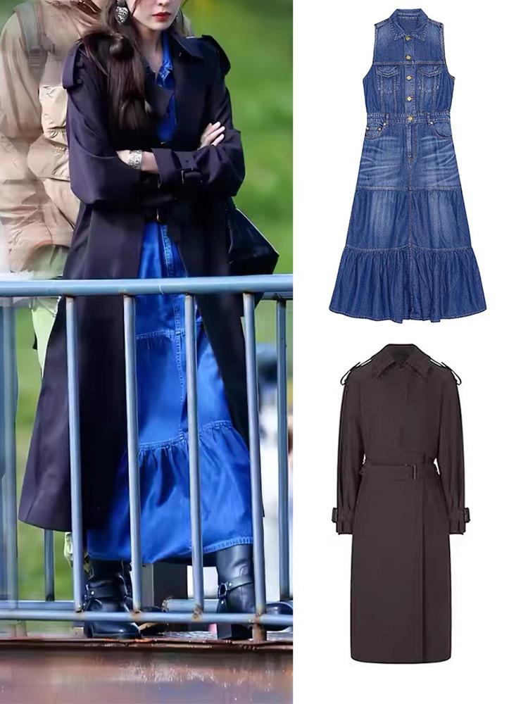 Dark brown coat outwear pre-sale, Denim dress in stock