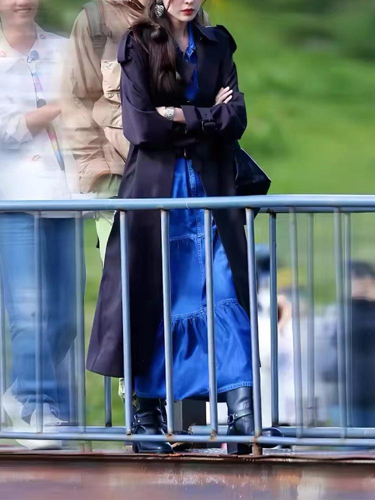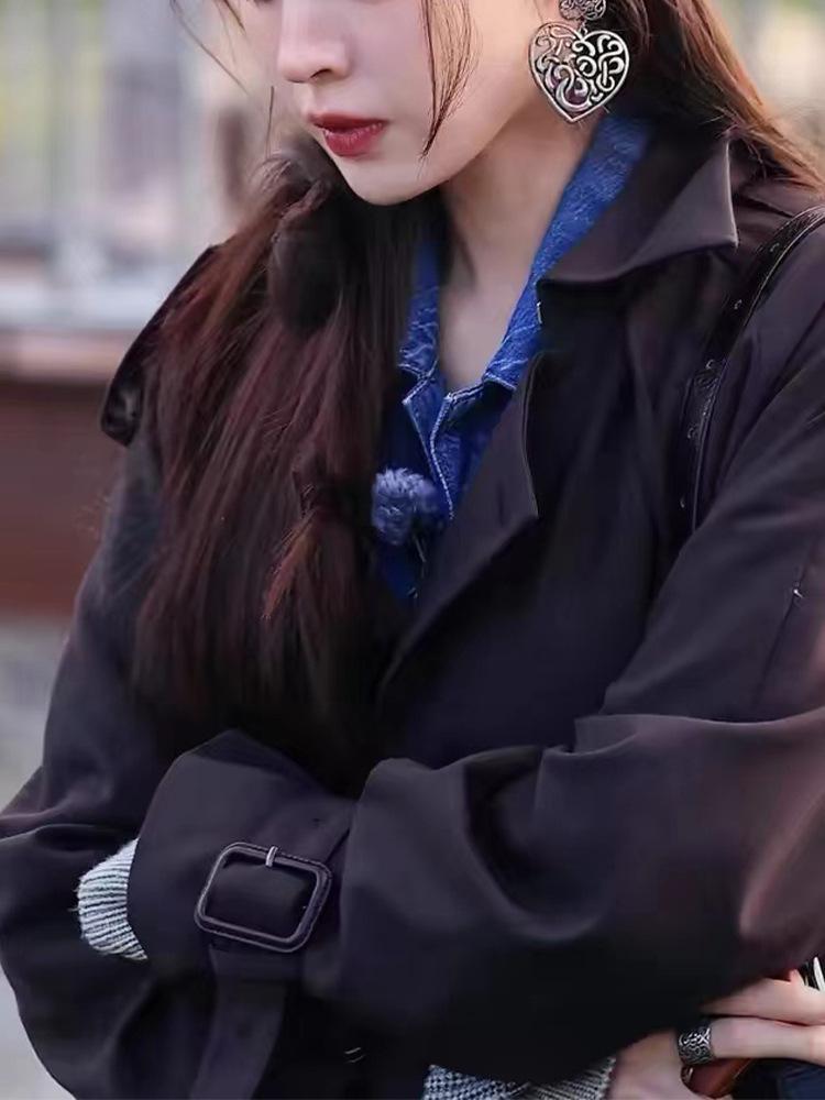 En stock, gabardina con lazo Guli Na para mujer, abrigo largo estilo británico de principios de otoño 2024, abrigo para mujer.