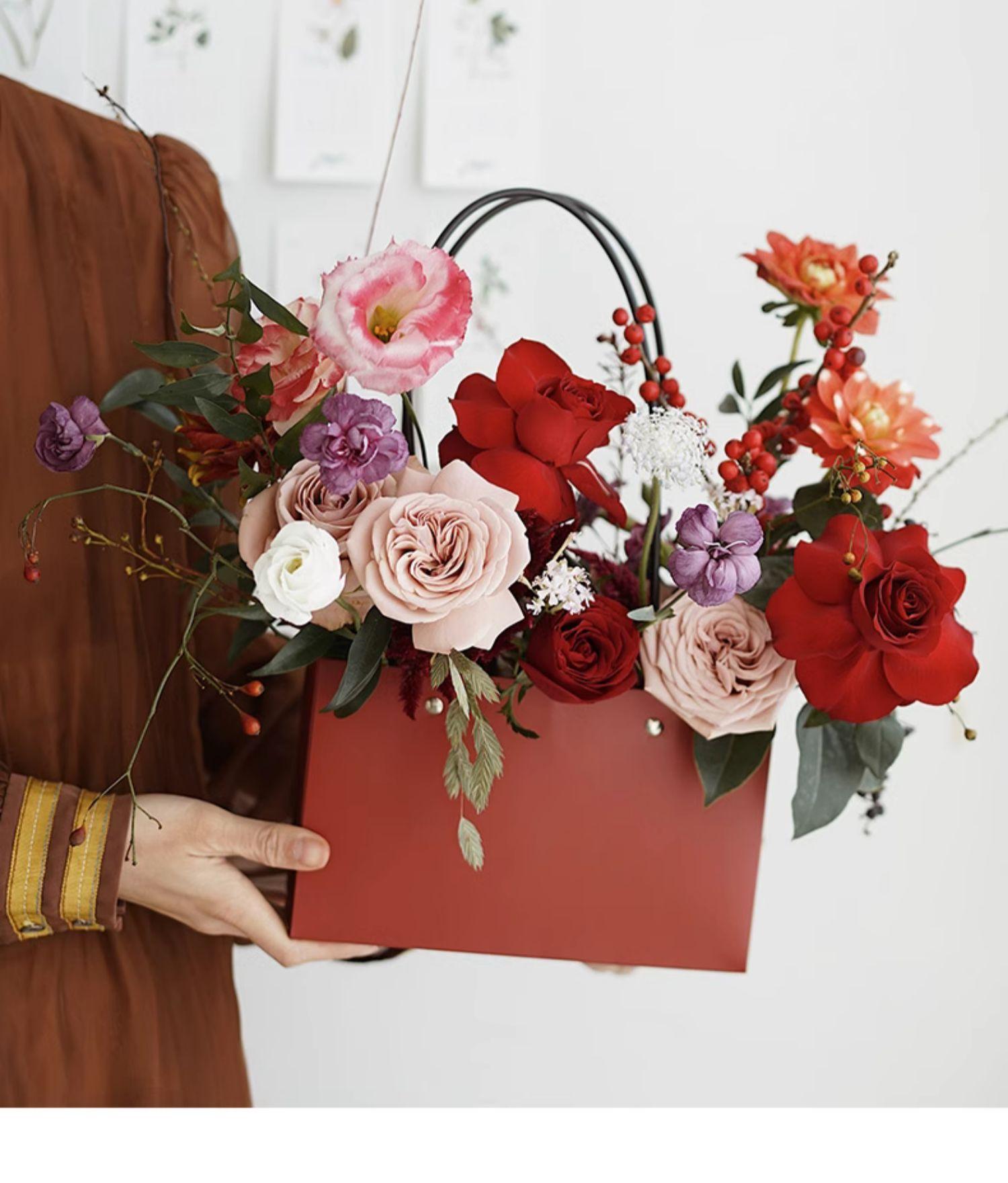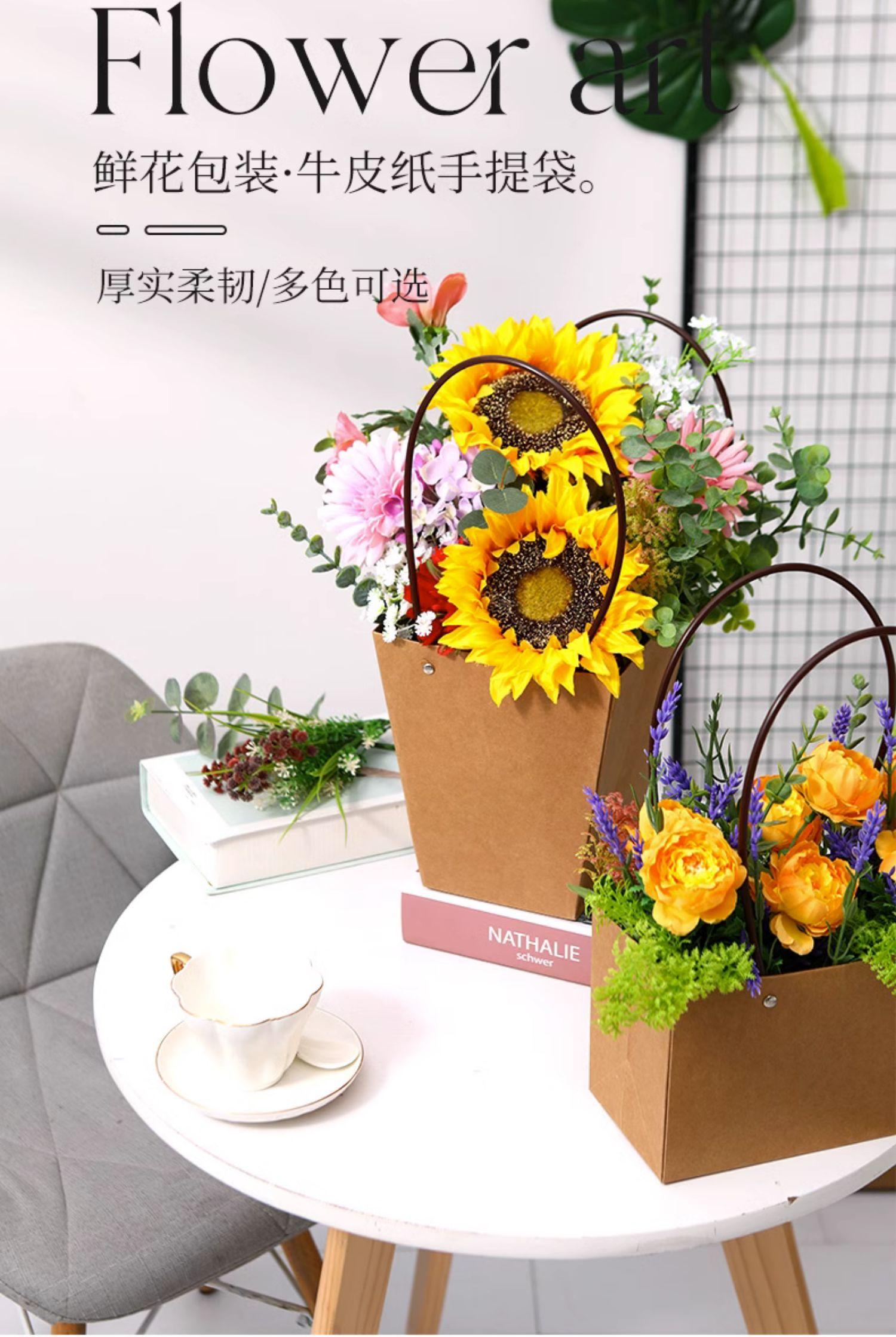 Bolsa de mano de papel kraft para flores, caja de regalo, embalaje para ramo de flores, material para caja de flores, arreglo floral, bolsa para flores, florería, bolsa floral