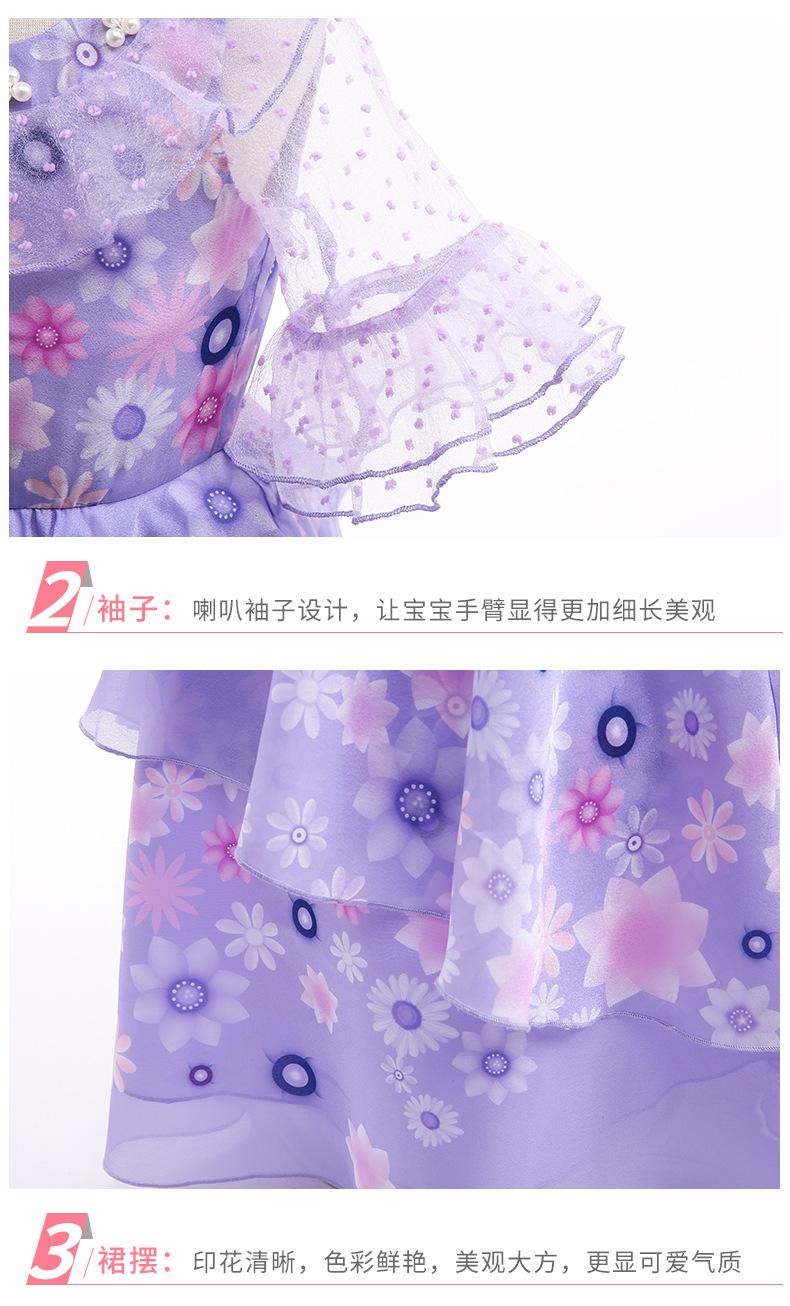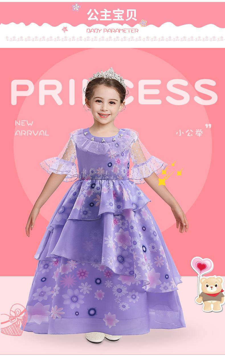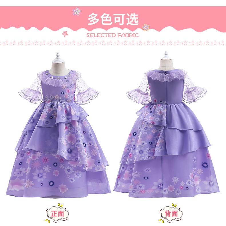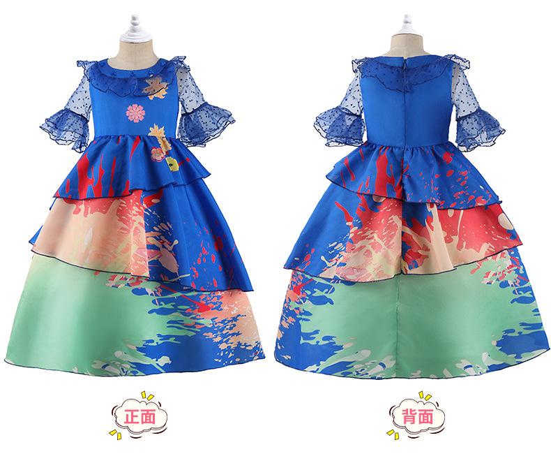 Vestido de princesa para niñas, con costuras de colores contrastantes y malla mágica de Explosiones Transfronterizas, ideal para fiestas de cosplay.