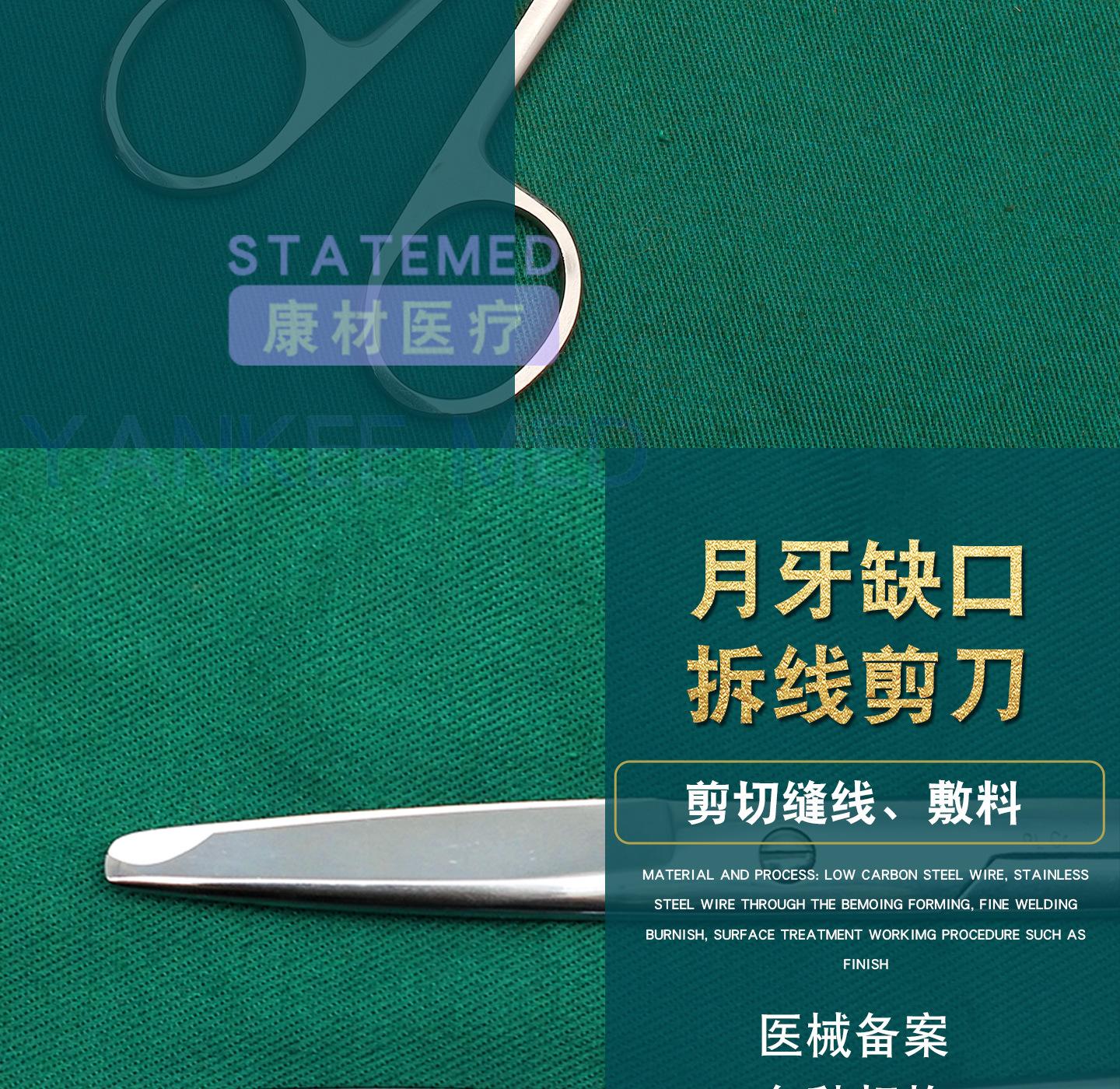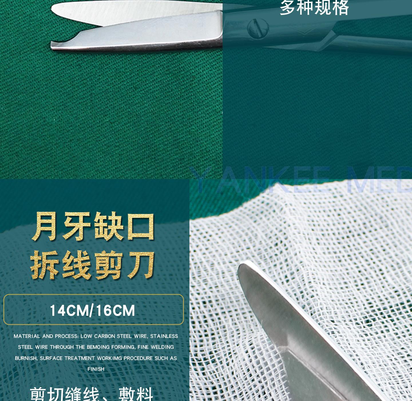 Tijeras de acero inoxidable para extracción de hilos, tijeras de muesca en forma de media luna, tijeras de enfermería, tijeras de cabeza redonda para cambio de apósitos quirúrgicos, tijeras para vendajes de gasa.