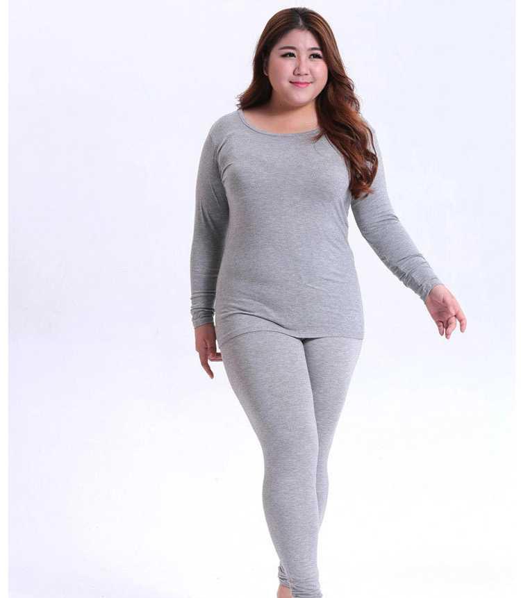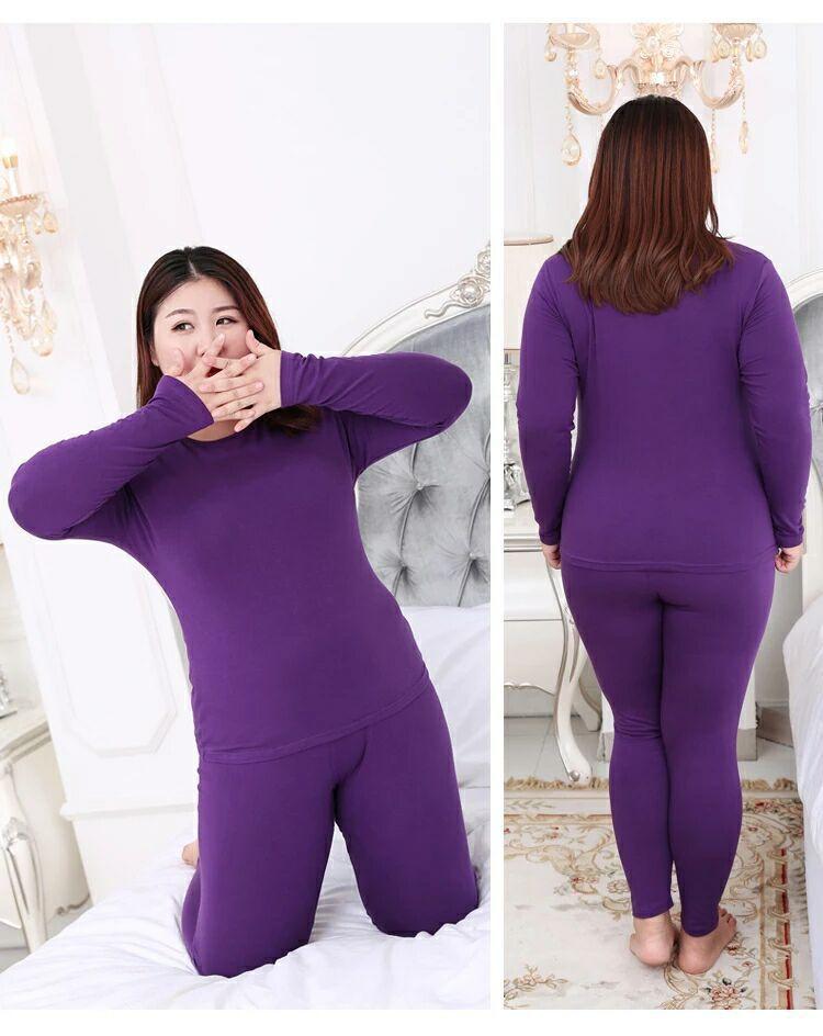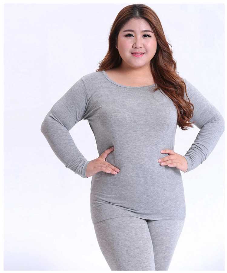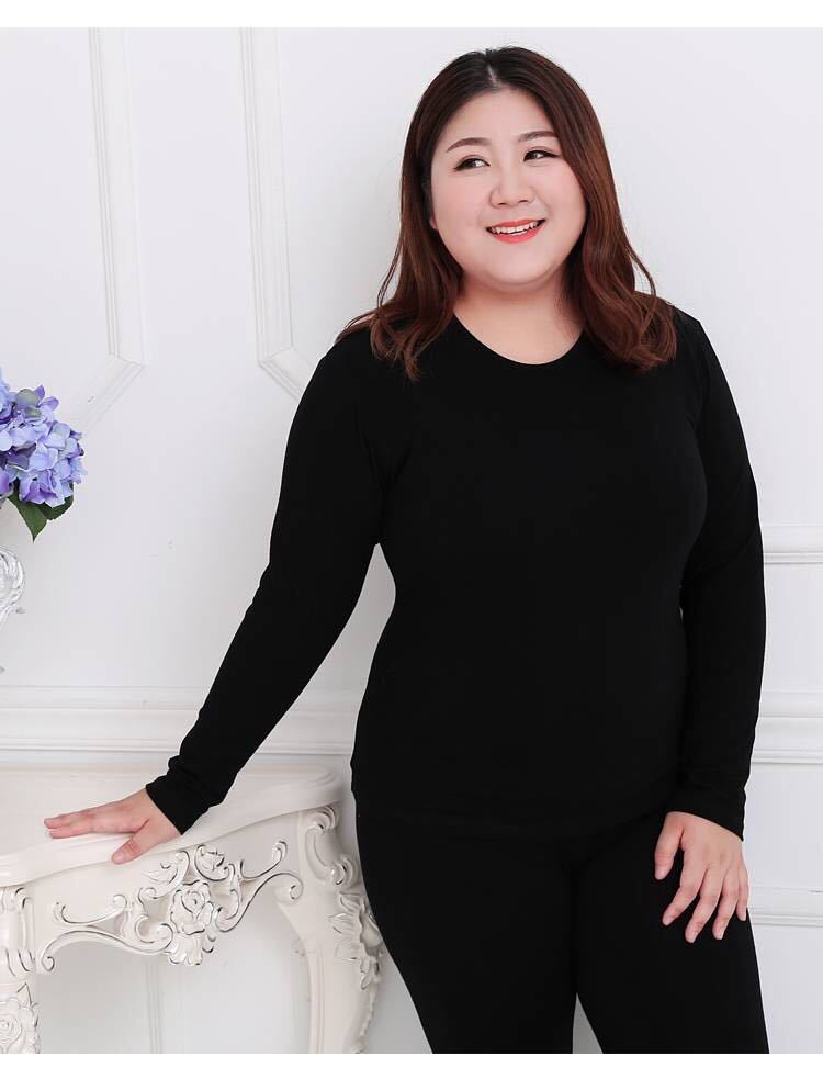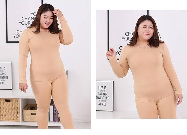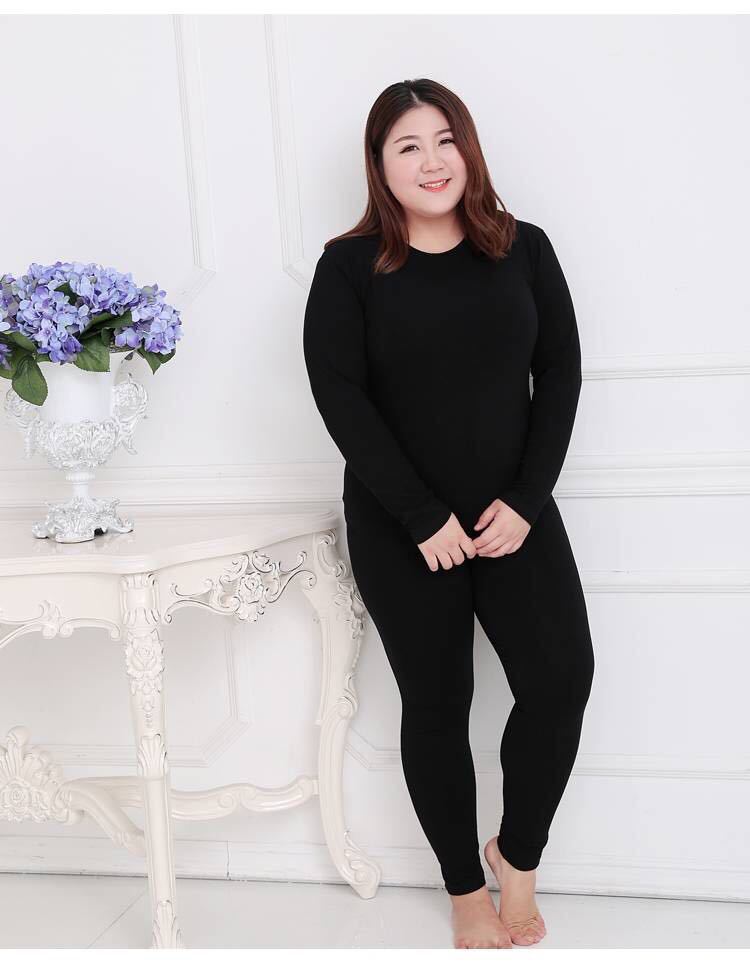 Ropa interior térmica al por mayor para mujer, color sólido, gordita, talla grande, ropa de otoño, forro polar y terciopelo fino, siete colores dentro de 240 kg
