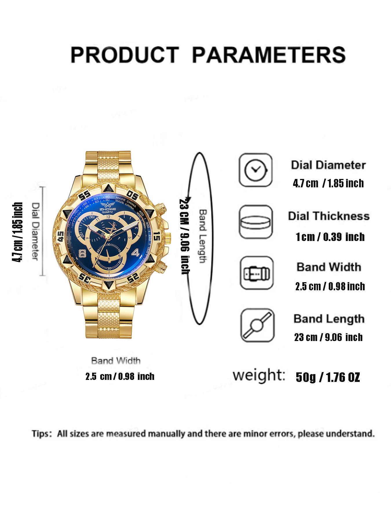 Nuevo reloj de pulsera para hombre moderno de negocios con esfera grande de tres ojos y correa de acero, cristal de luz azul, reloj de pulsera para hombre