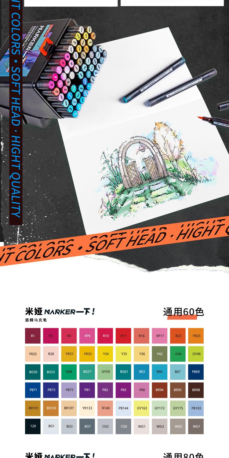 Mia alcohol marker student universal 60 color, Mia alcohol marker pen animation design 60 color, Mia alcohol m...