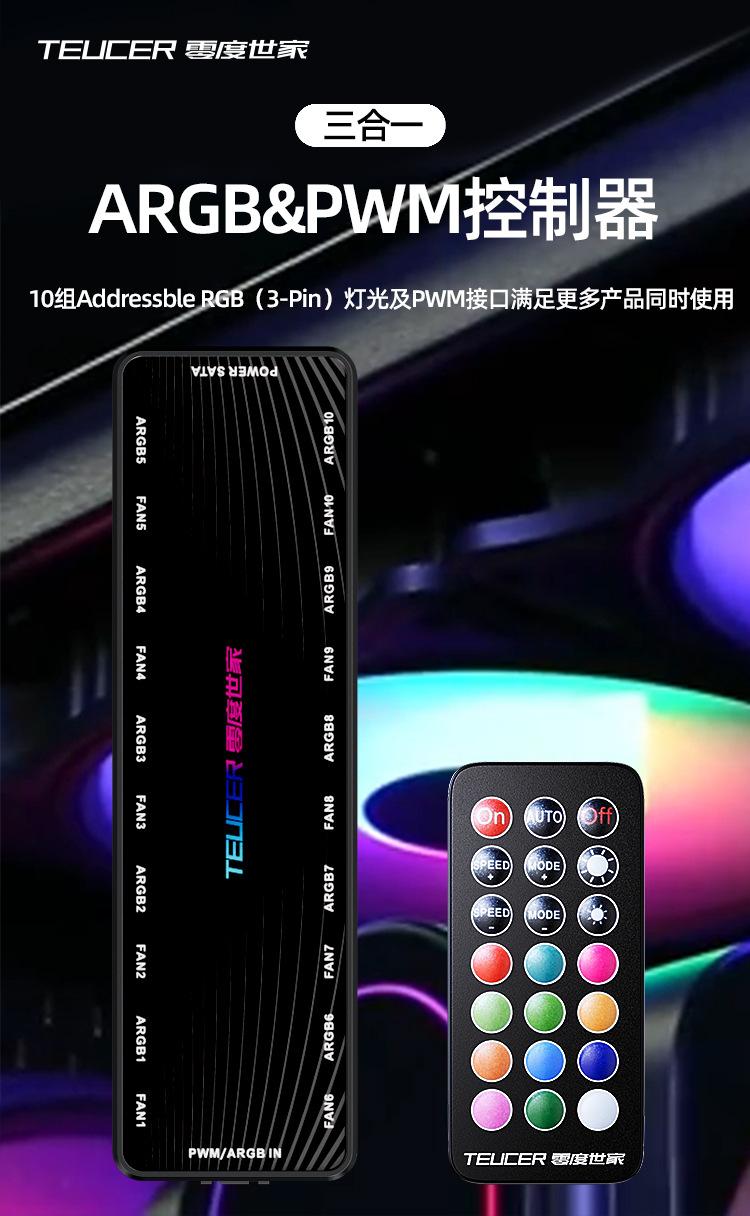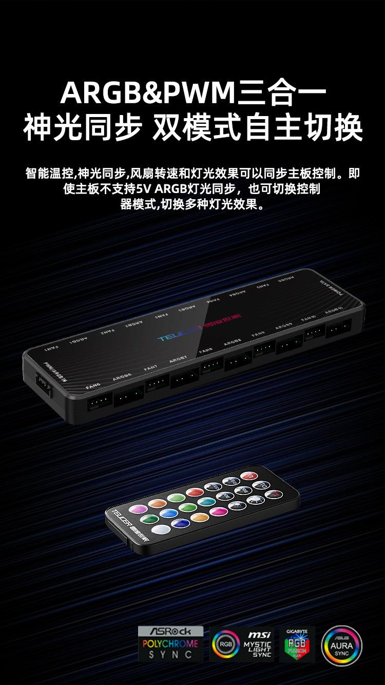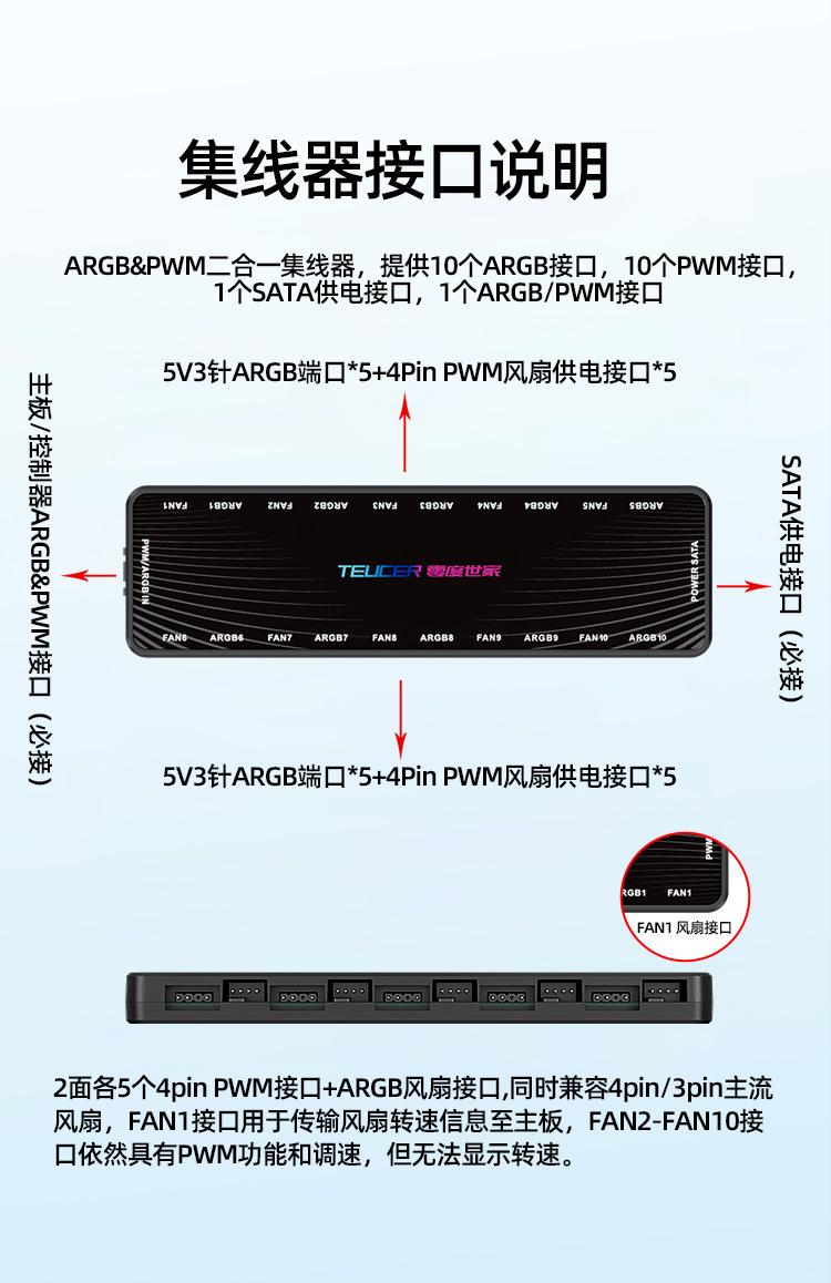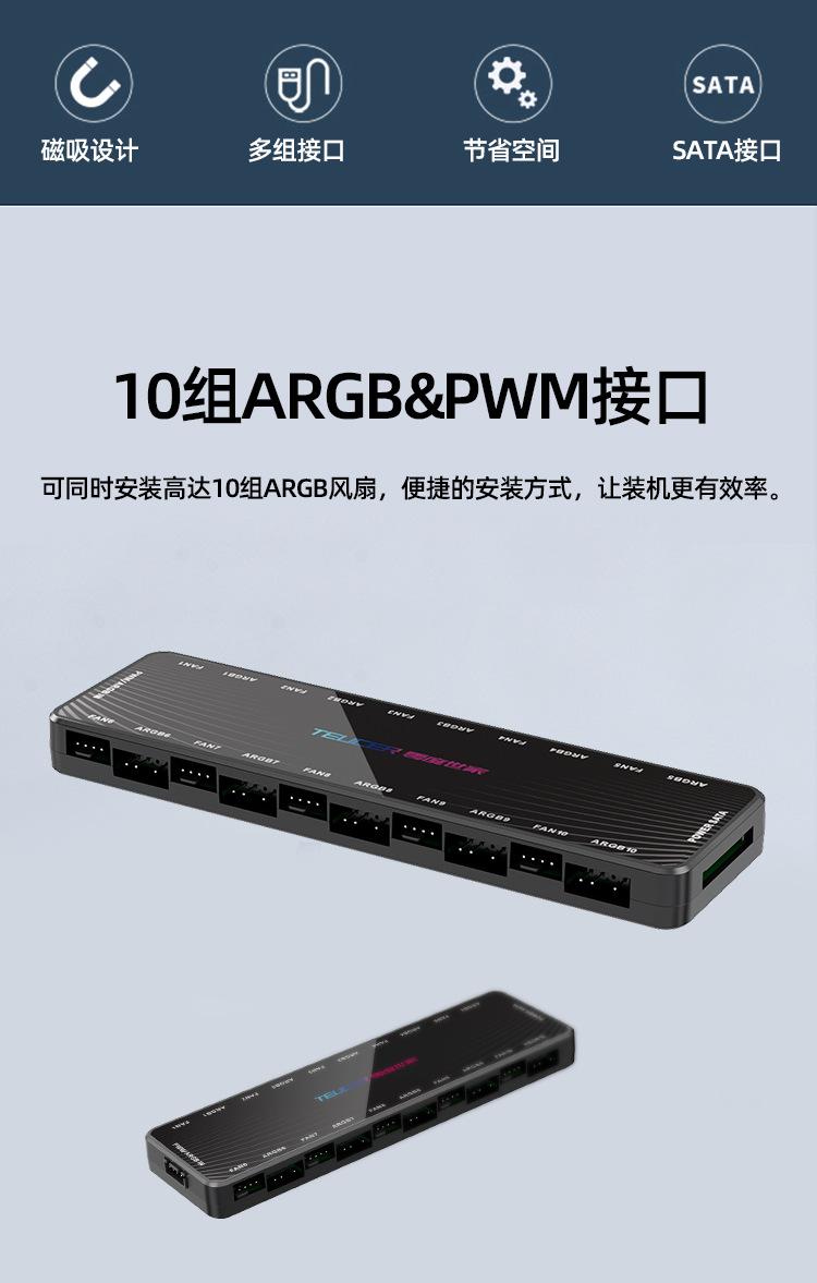 PWM/ARGB 1to10 Hub, LP-10P-CR controller black (motherboard does not support can also be used), LP-10P-CR cont...