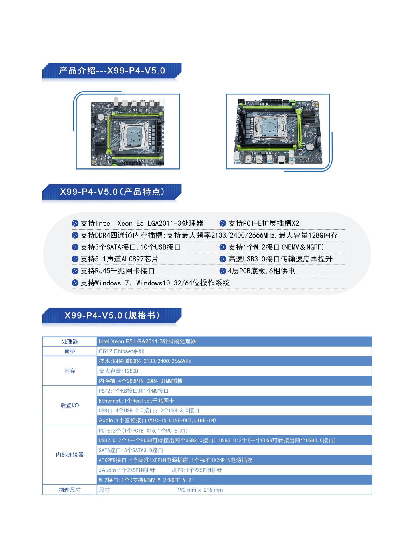 Placa Base de Escritorio X99-P4-V5.23 Chipset Original X99 Paquete C612 Soporta 2011-3-Pin Ddr4 Completamente Nueva