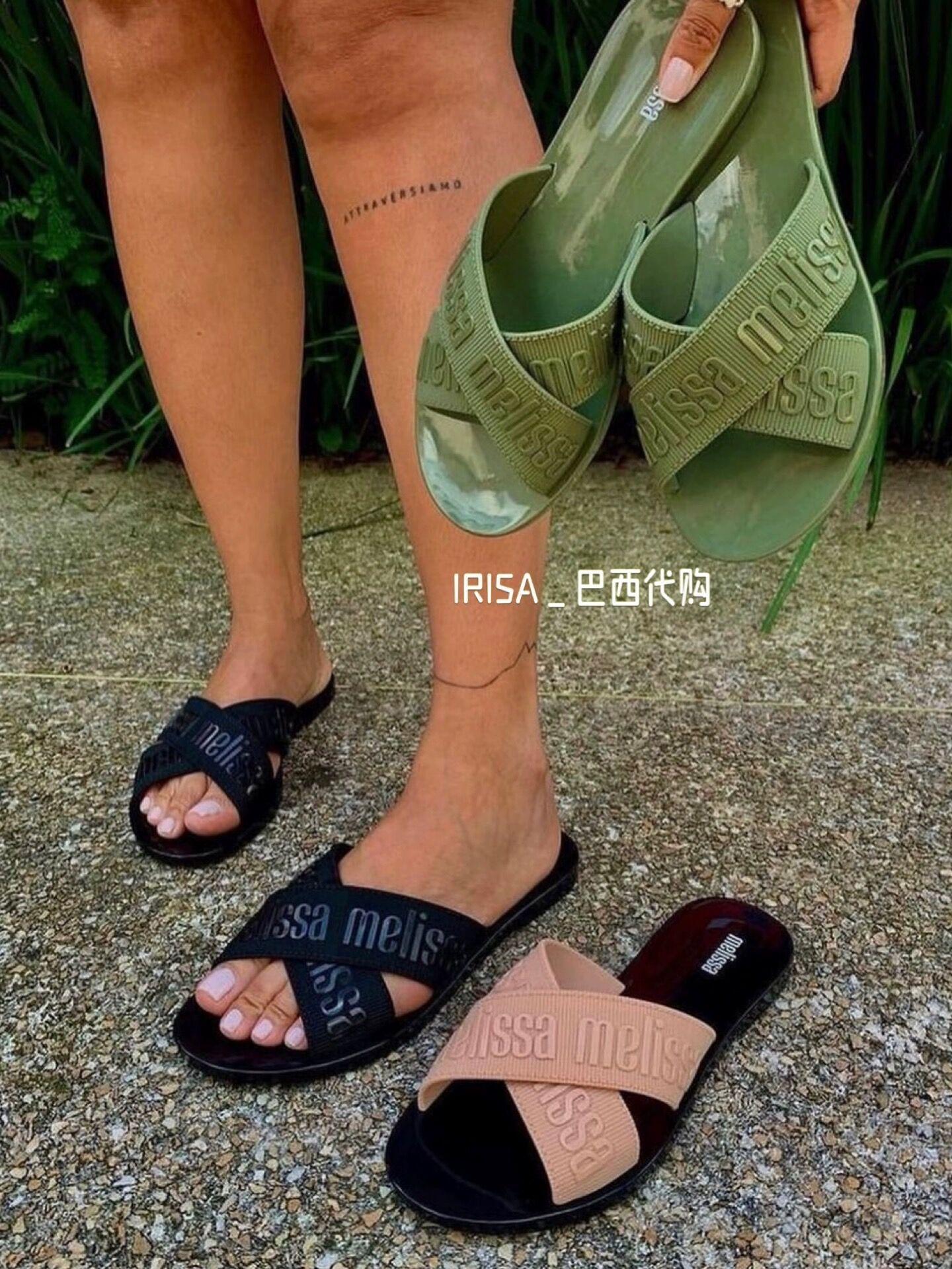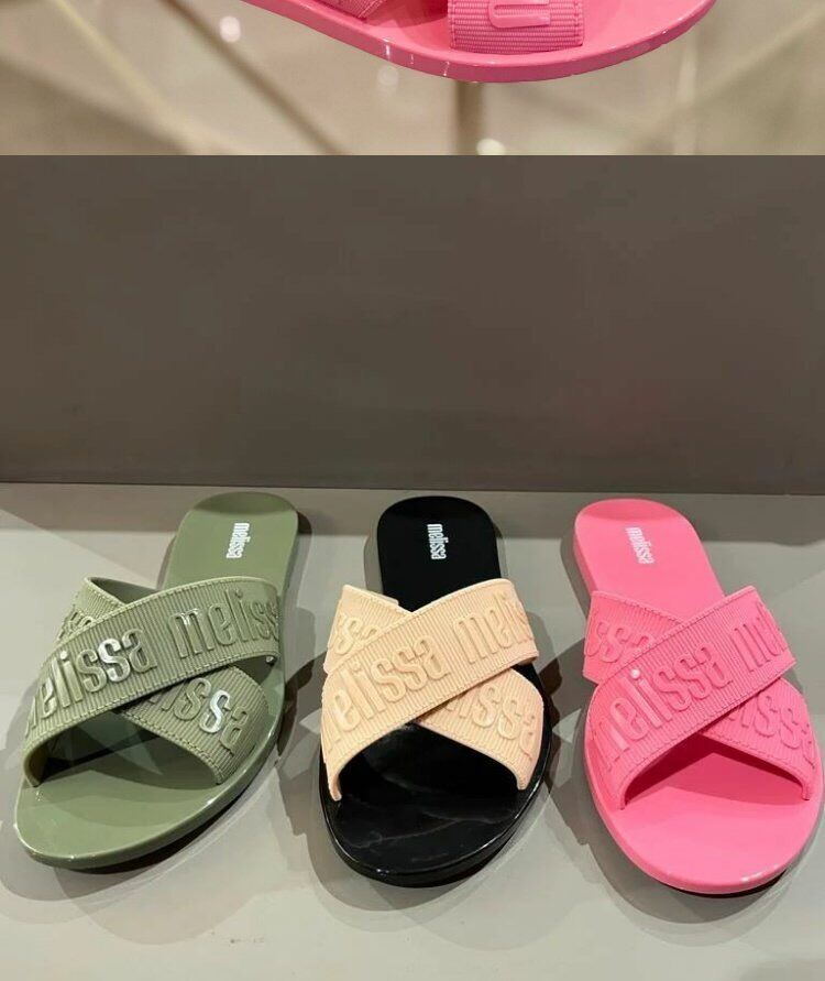 2025 Nuevas zapatillas Melissa Crossover de verano, sandalias casuales de tacón plano a la moda, ropa exterior, zapatos de gelatina