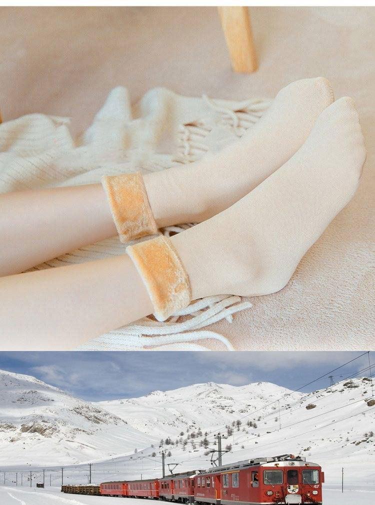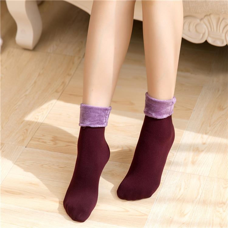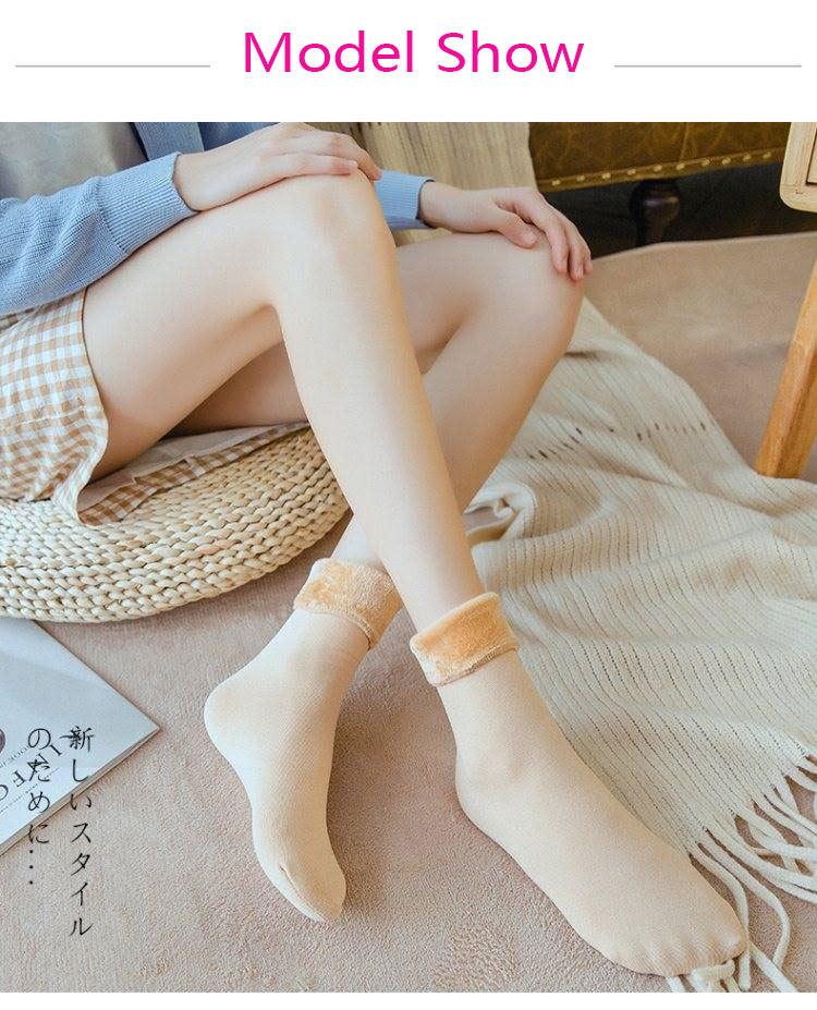 Calcetines para mujer otoño e invierno nuevos calcetines de nieve calcetines de media caña calcetines de piso cálidos gruesos con forro polar calcetines cálidos para adulto color carne