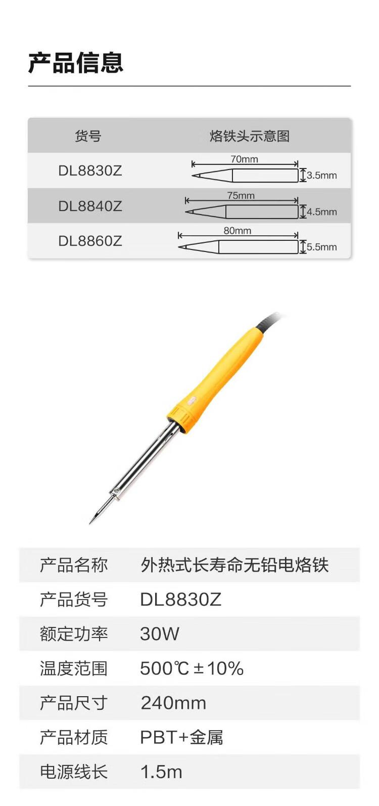 30W long life external heat electric soldering iron DL8830C, External heating type constant temperature 30W DL...