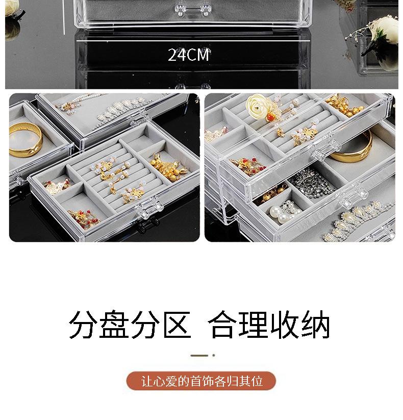 Caja de almacenamiento para pendientes, collares, acrílico transparente, cajón pequeño para guardar joyas.