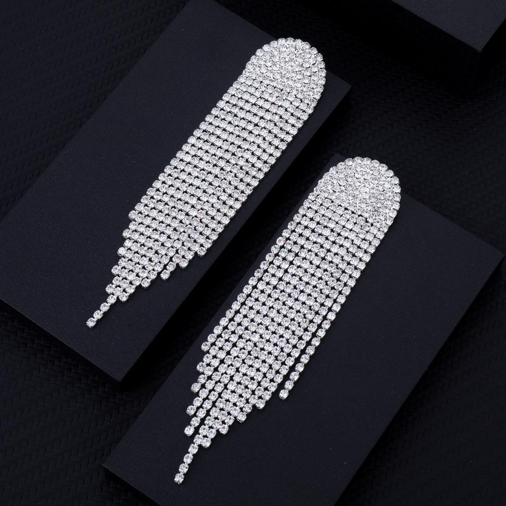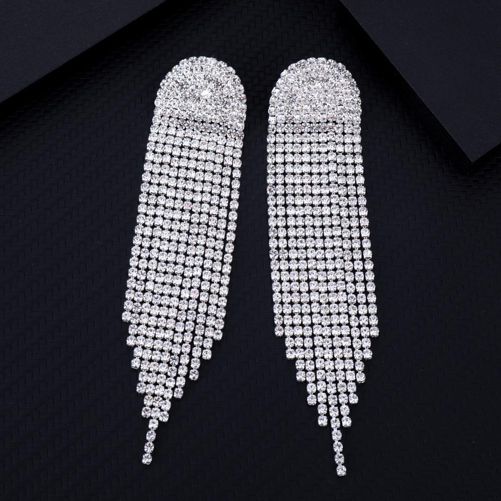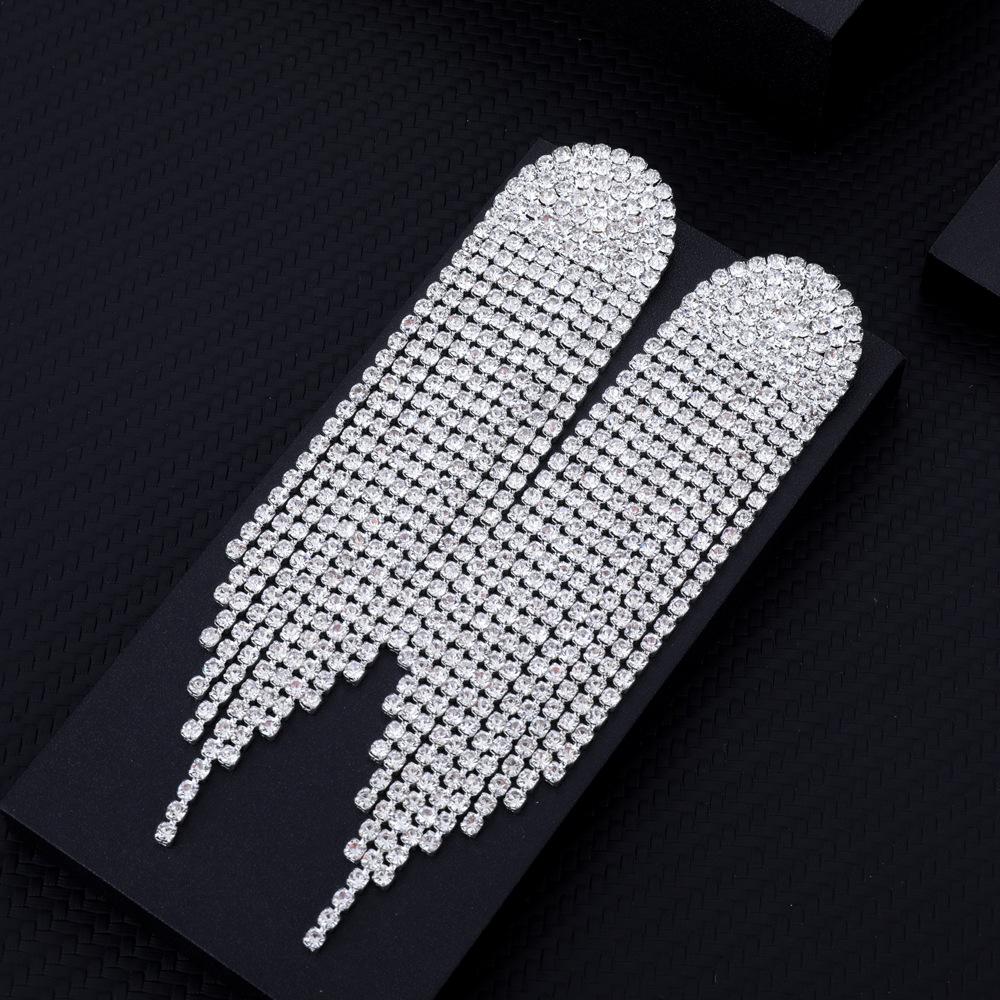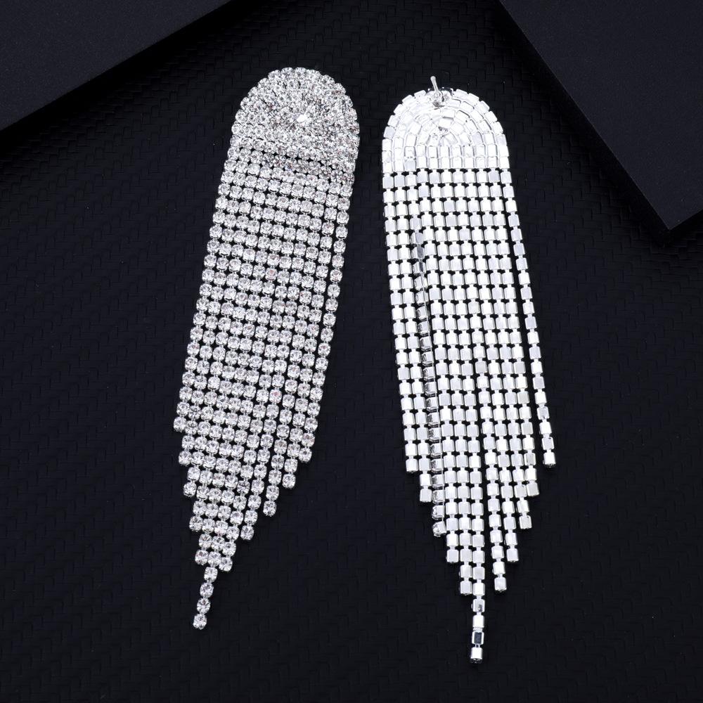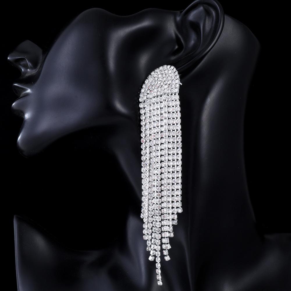 Pendientes de cadena de garra exagerada europeos y americanos, venta al por mayor, con diamantes completos, borlas largas y diamantes de imitación, para vestido de novia, 2023