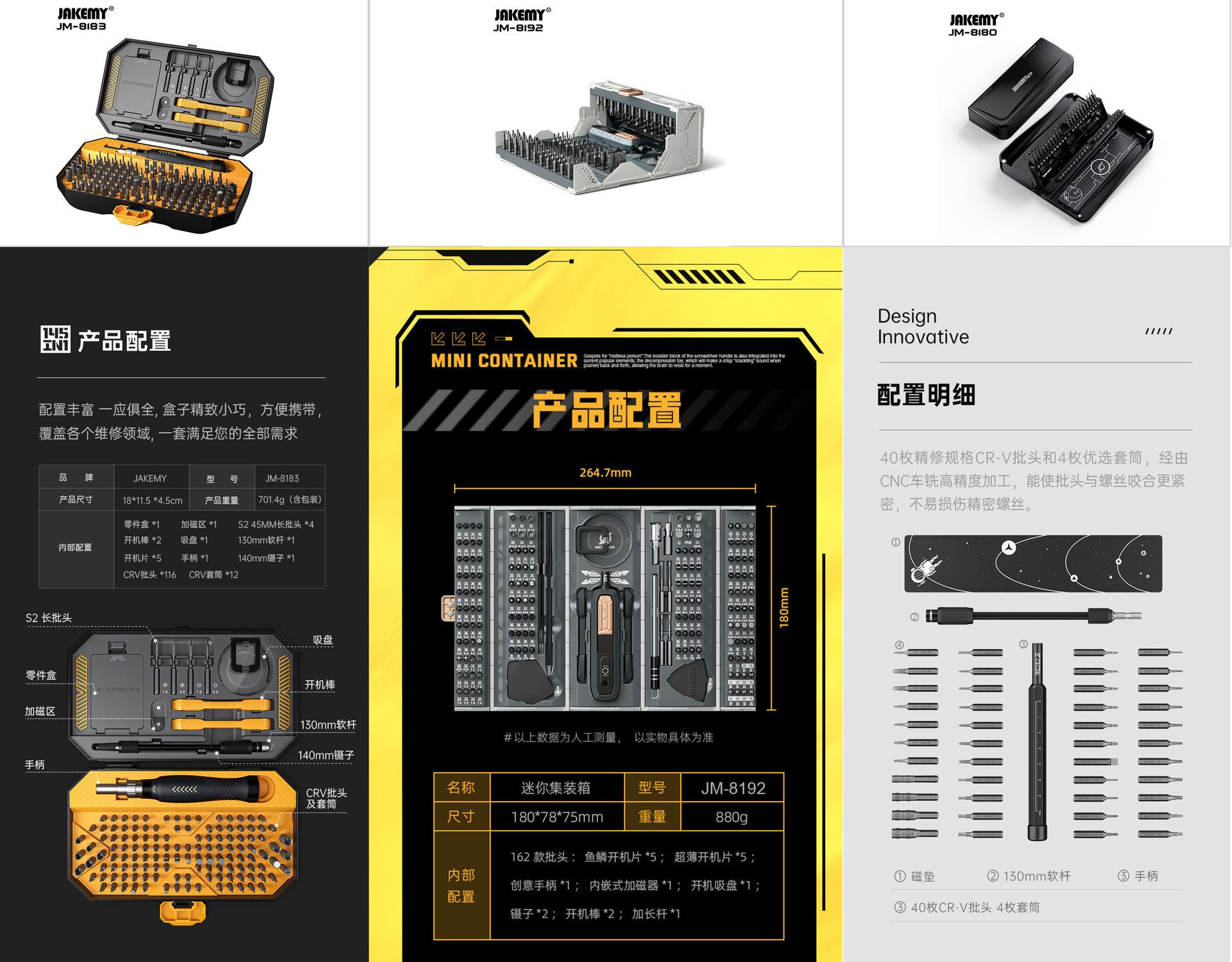 JAKEMY transfronterizo cruz JM-8 192 180 en uno juego de herramientas de destornillador de precisión herramienta de reparación de teléfono móvil