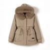 Ropa Parker para Mujer Invierno Nuevo Estilo Coreano Cintura Ajustada Adelgazante con Capucha Cuello Grande de Piel Forro Polar Chaqueta Acolchada de Algodón de Largo Medio