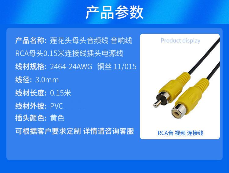 Línea de audio RCA de un solo cabezal Línea adaptadora AV macho línea av video de un solo cabezal cable hembra RCA amarillo 0.15 metros