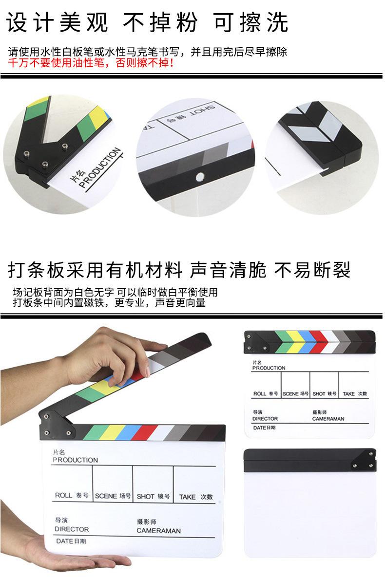 7. Esta claqueta es una decoración/accesorio para fiestas de Hollywood. Se puede escribir con tiza y es fácil de borrar. Características de la claqueta Superficie de pizarra blanca o negra, se puede escribir con rotulador para pizarra blanca, marcador a base de agua o tiza, simple y práctica, clara y visible, la claqueta utiliza madera dura, el sonido es nítido y fuerte Ya sea que sea un amante del cine o un cineasta aficionado, etc., es una buena opción para recuerdos de películas. Es muy adecuada para juegos de rol, series de televisión, rodaje y edición de largometrajes, producción de video, películas de cine, entusiastas de la fotografía cinematográfica y televisiva para coleccionar y exhibir buenos accesorios digitales de fotografía de cámara, etc.