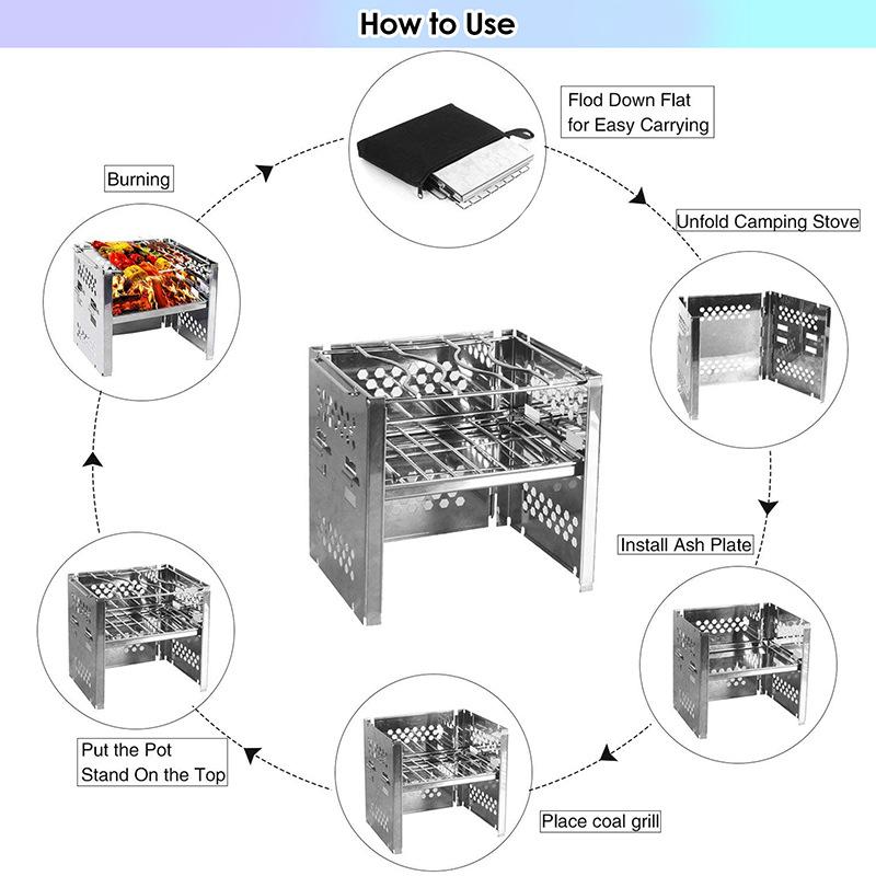 Embalaje: cuerpo principal + rejilla + red de carbón + bandeja de cenizas + bolsa de almacenamiento + caja blanca corrugada de tres capas
