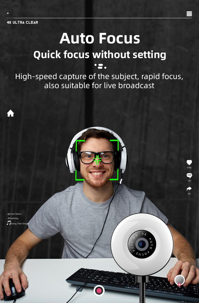 Cámara de computadora 4k con enfoque automático, modelo privado, belleza, 1080p, red HD, cámara web USB en vivo, 2k, sin unidad
