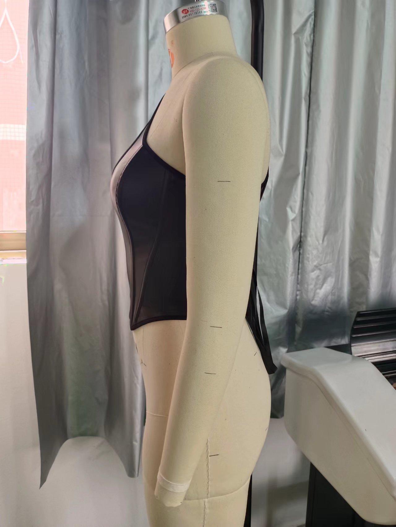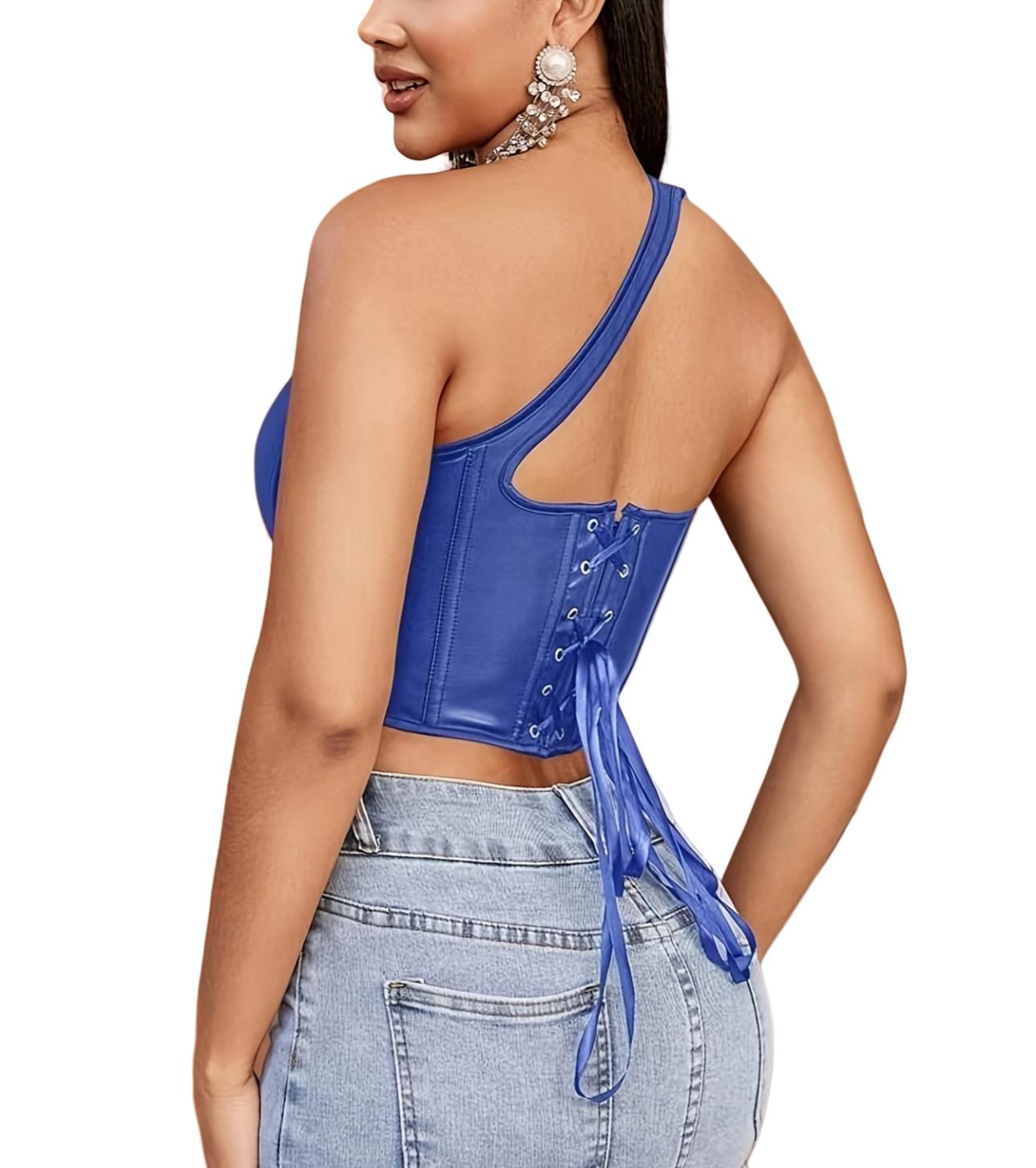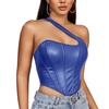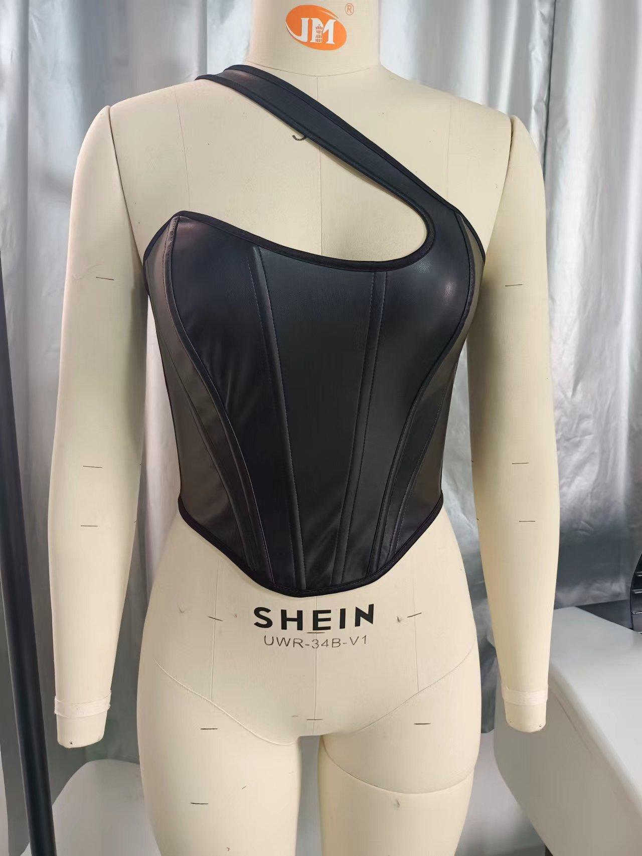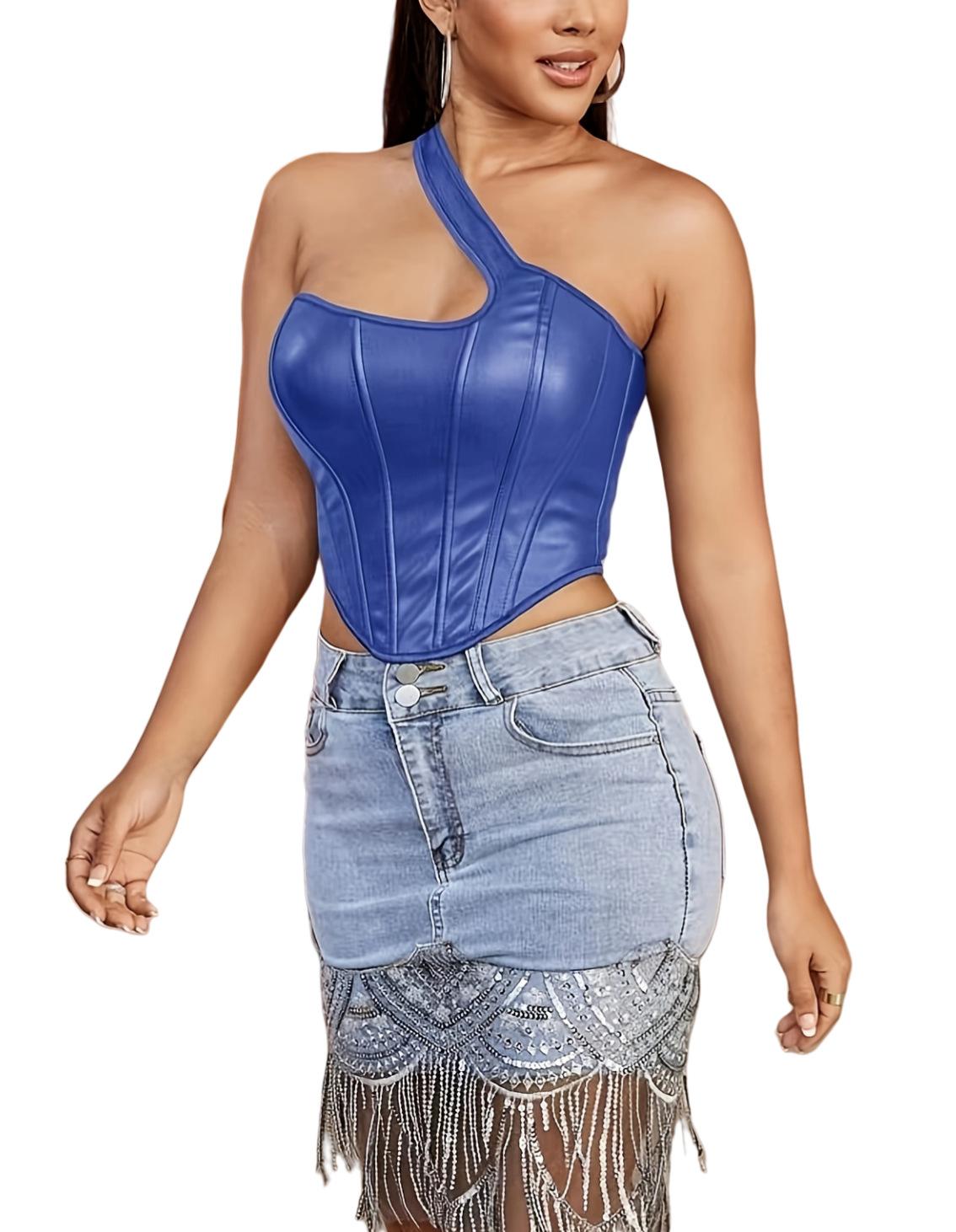 Nuevo Top Moldeador de Cuerpo de Cuero PU Transfronterizo Europeo y Americano, Chaleco de un Hombro, Sujetador de Ballena de Moda para Mujer, Corsé Sexy sin Espalda