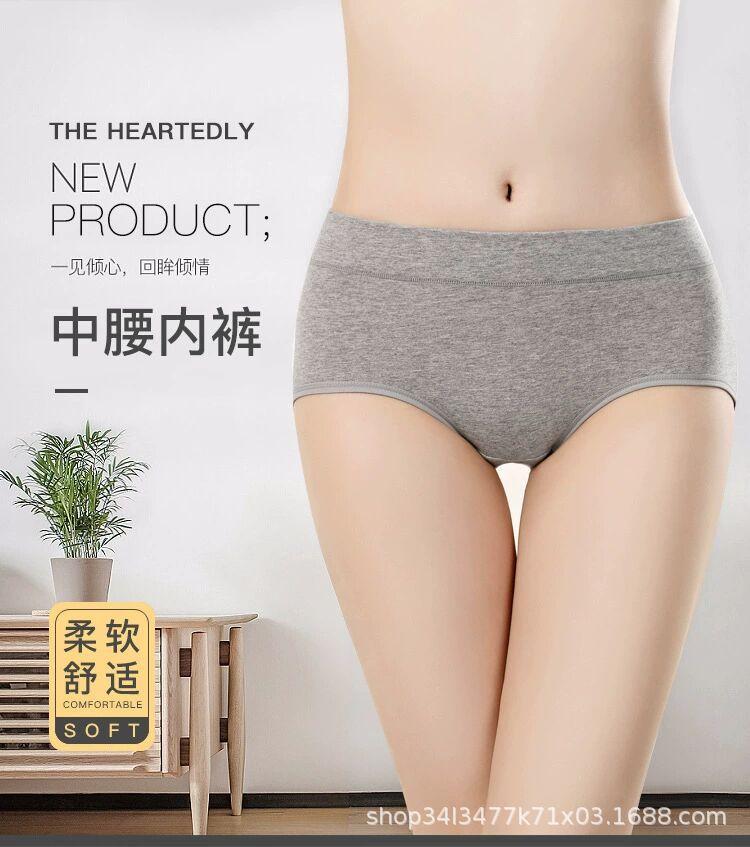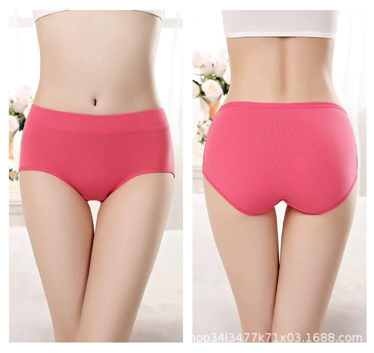 Ropa interior de cintura media de color sólido de algodón puro Ropa interior de mujer de cintura media sencilla de talla grande de algodón puro Ropa interior de mujer cómoda al por mayor