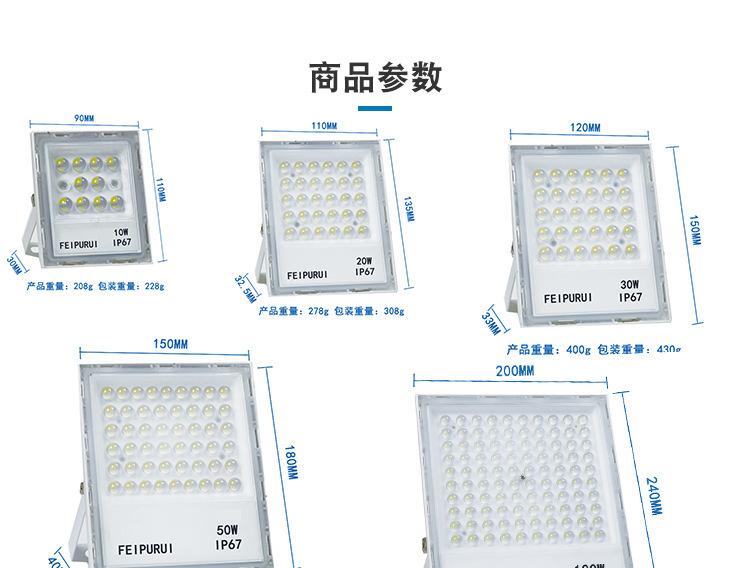 Feiprui reflector LED 10W-200W para exteriores, iluminación publicitaria de baldosas para pies, LED brillante ultradelgado a prueba de agua