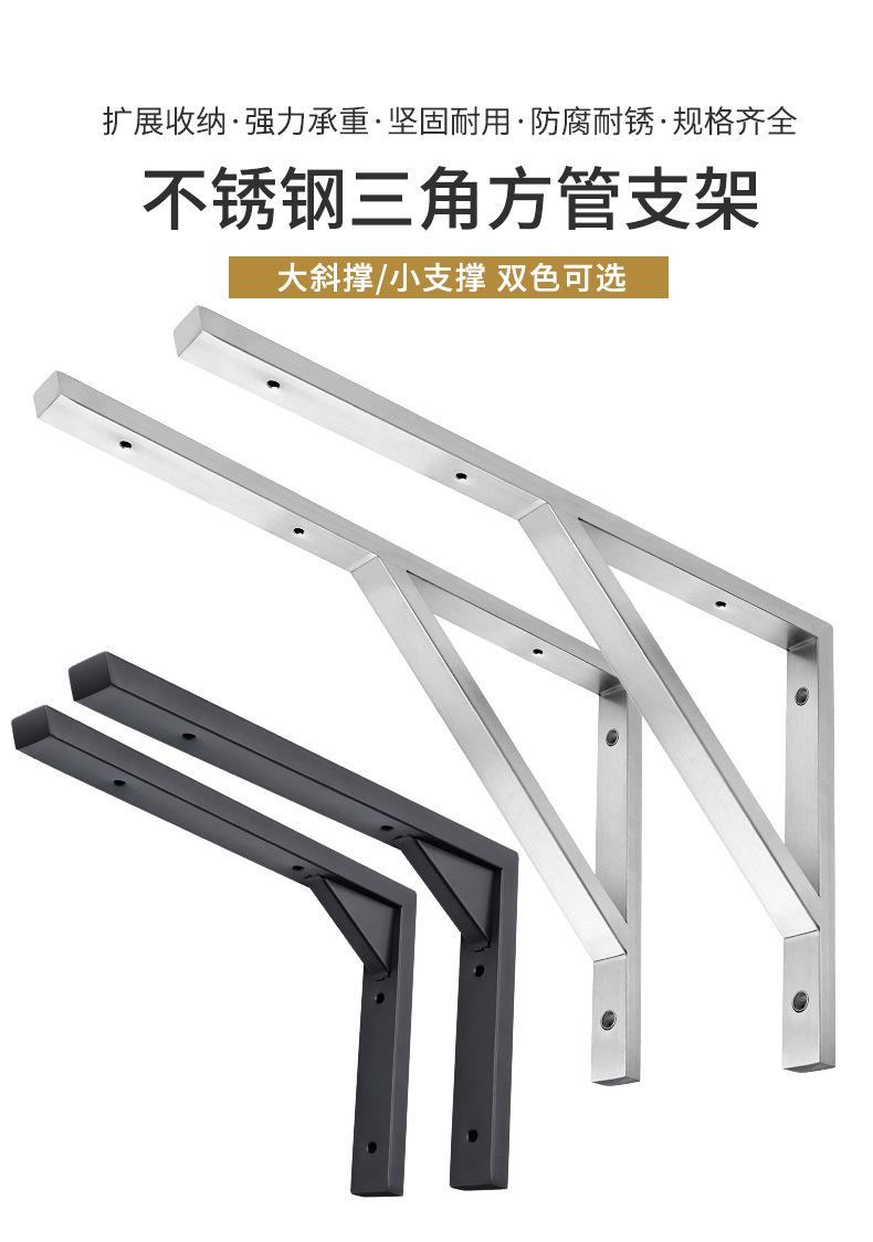 Soporte de tubo cuadrado de acero inoxidable, soporte para colgar en la pared, partición, soporte fijo en ángulo recto, trípode, soporte de pared, estante de almacenamiento