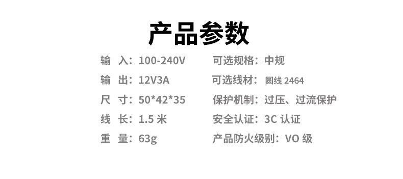 Adaptador de corriente de 12 V 3 A Guoaotong Zhonggui 3C Certificado de fábrica en stock Franqueo Adaptador de corriente para pequeños electrodomésticos