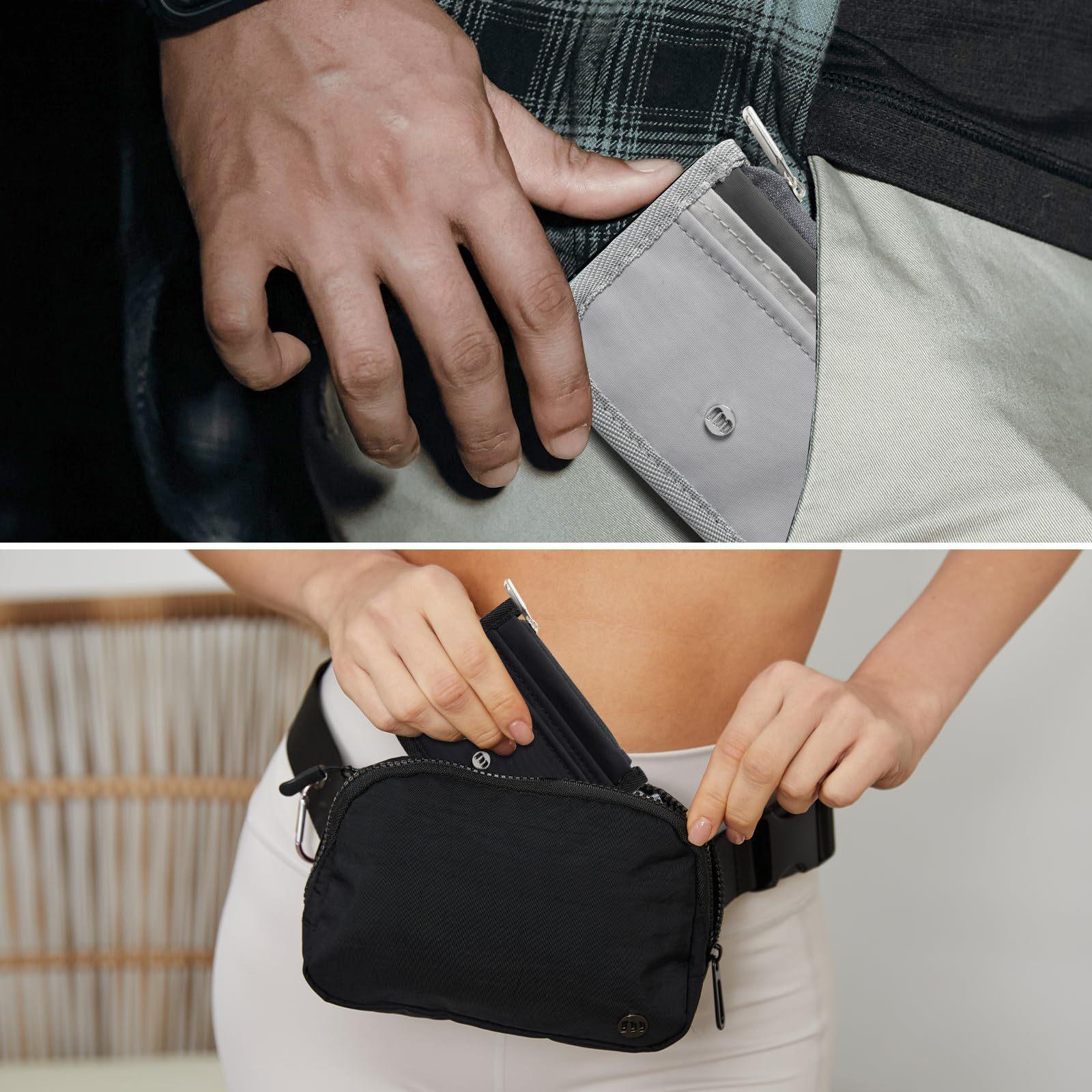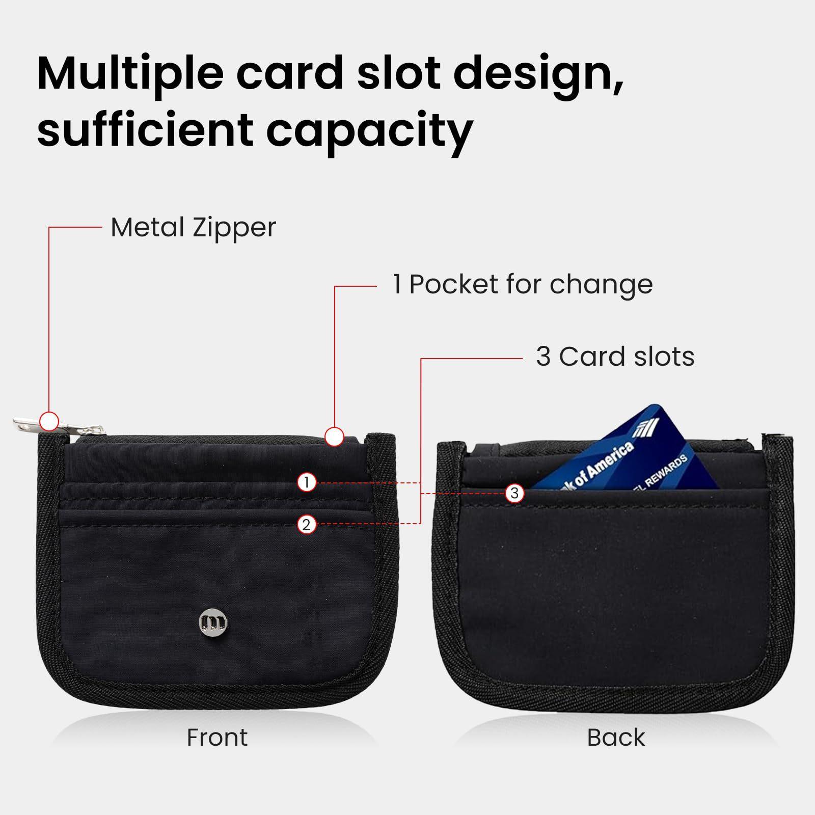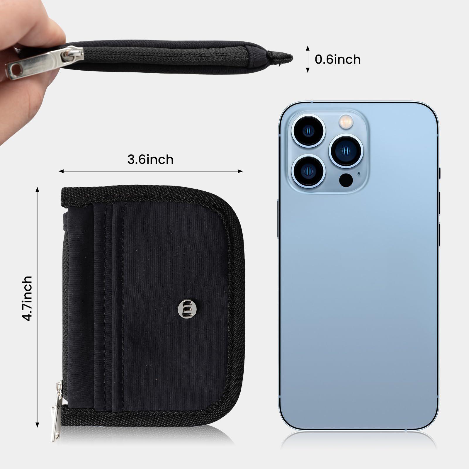Cartera minimalista con cremallera RFID, cuatro bolsillos delanteros y traseros, muy popular en Amazon.