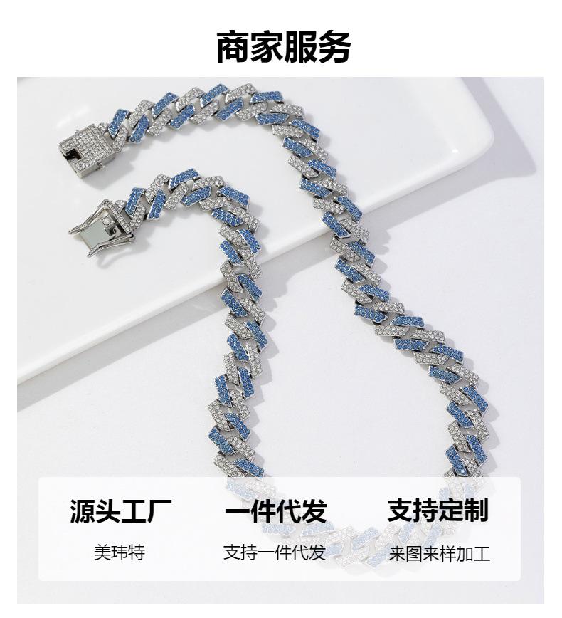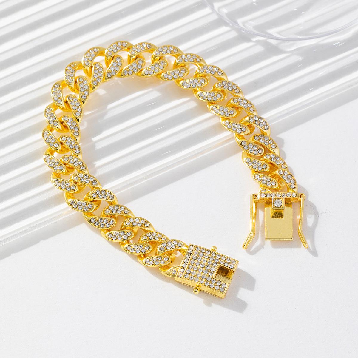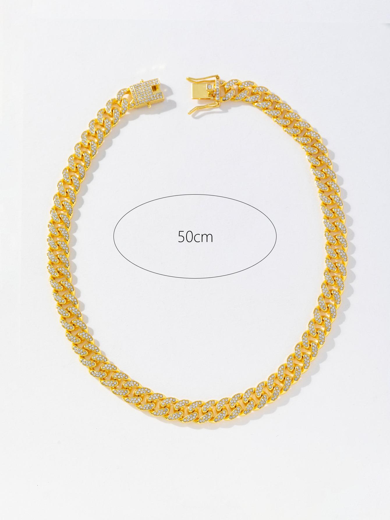 Popular Estilo Hip-Hop Europeo y Americano Aleación Incrustada con Diamantes 12mm Diamante Completo Collar Cadena Cubana para Hombre Joyería Versátil de Calle al por Mayor
