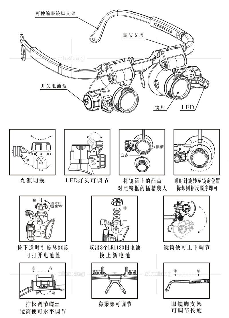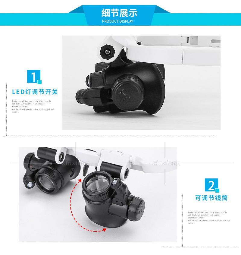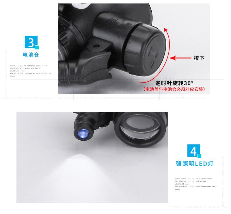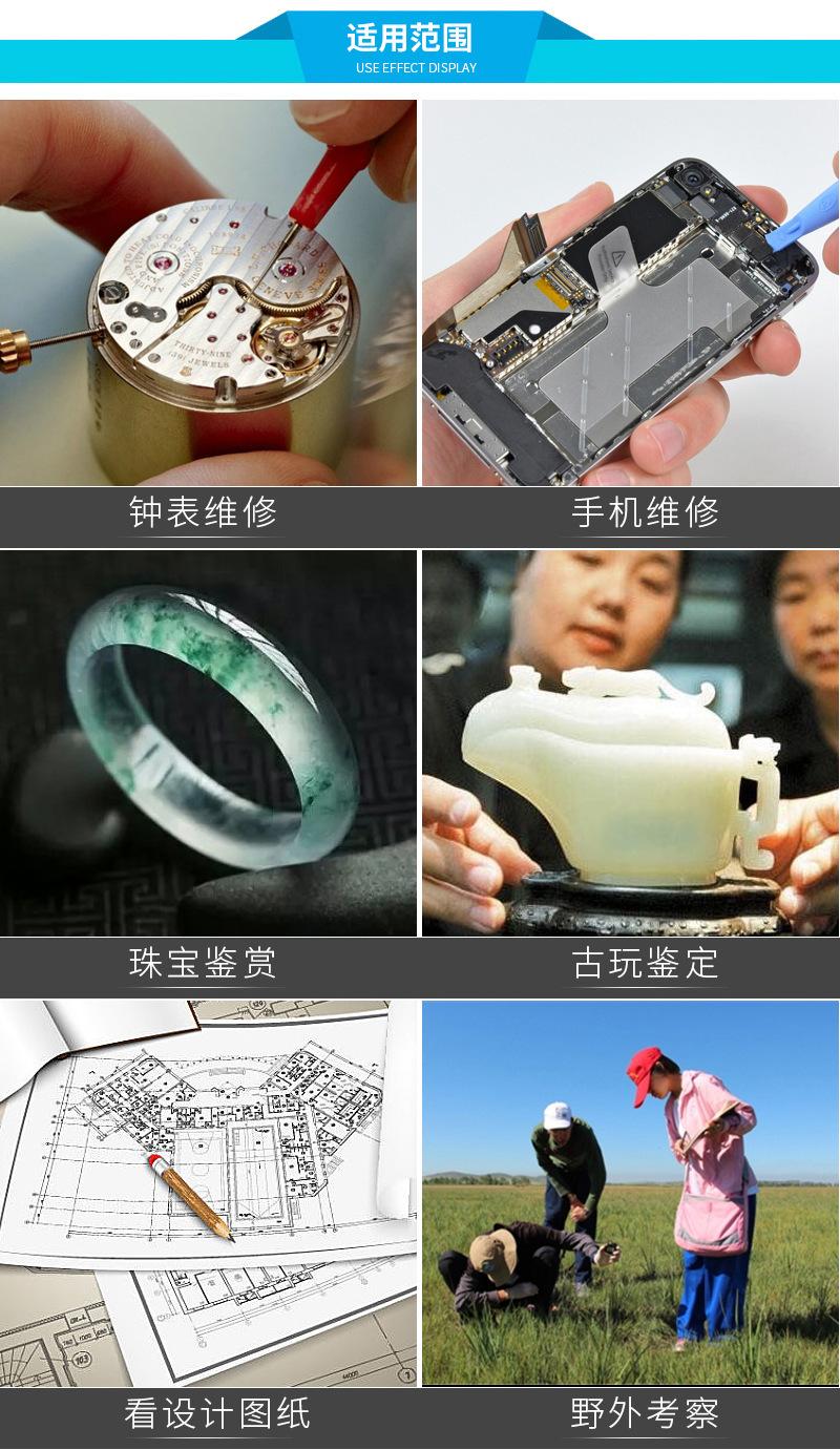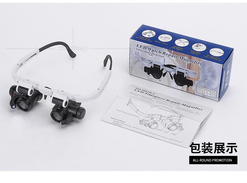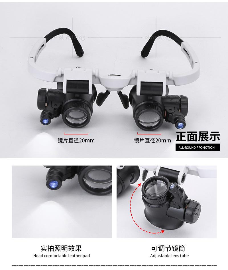 Cabeza binocular triple con lupa LED de alta potencia, pata de espejo retráctil, reparación, mantenimiento, inspección, tipo de gafas dobles