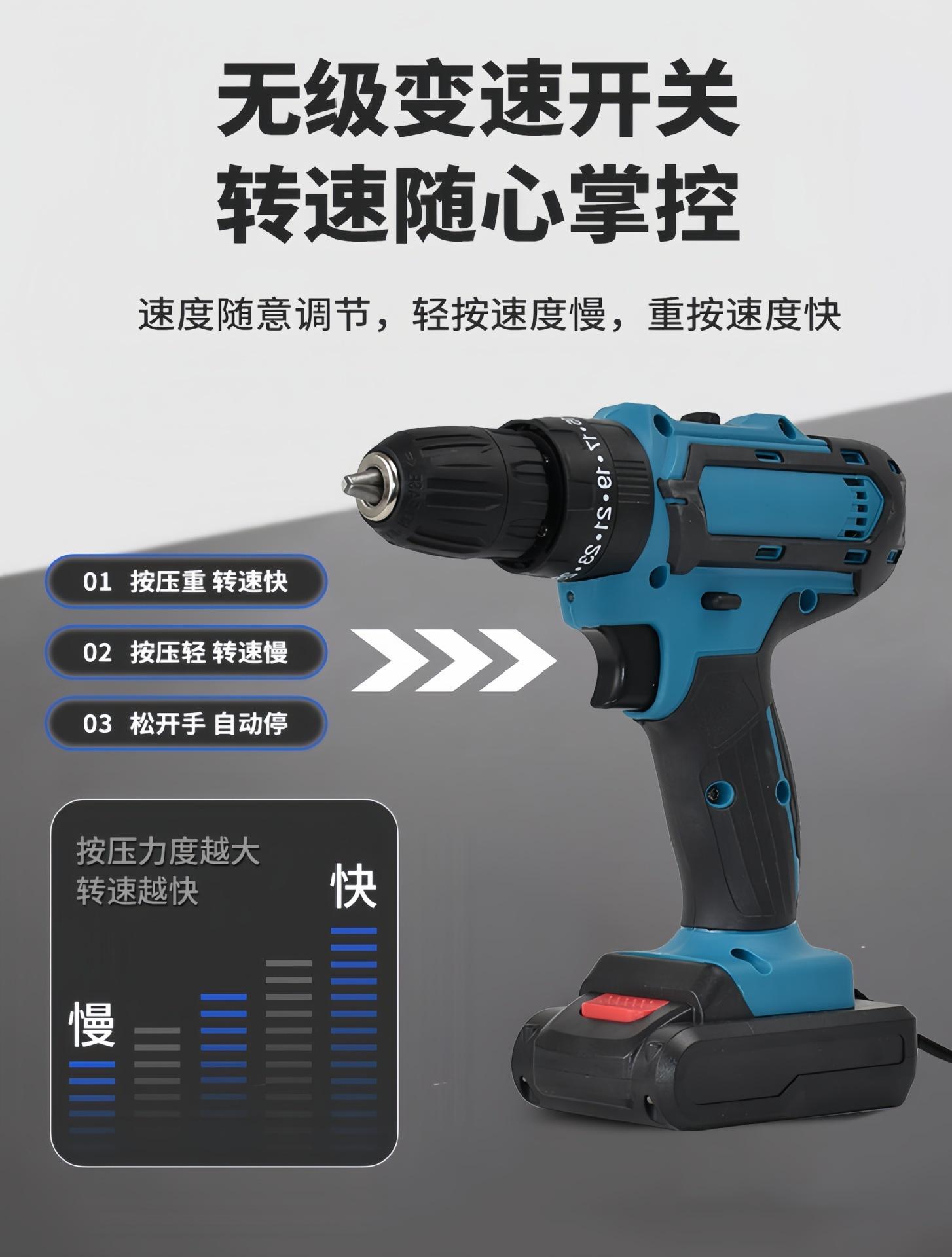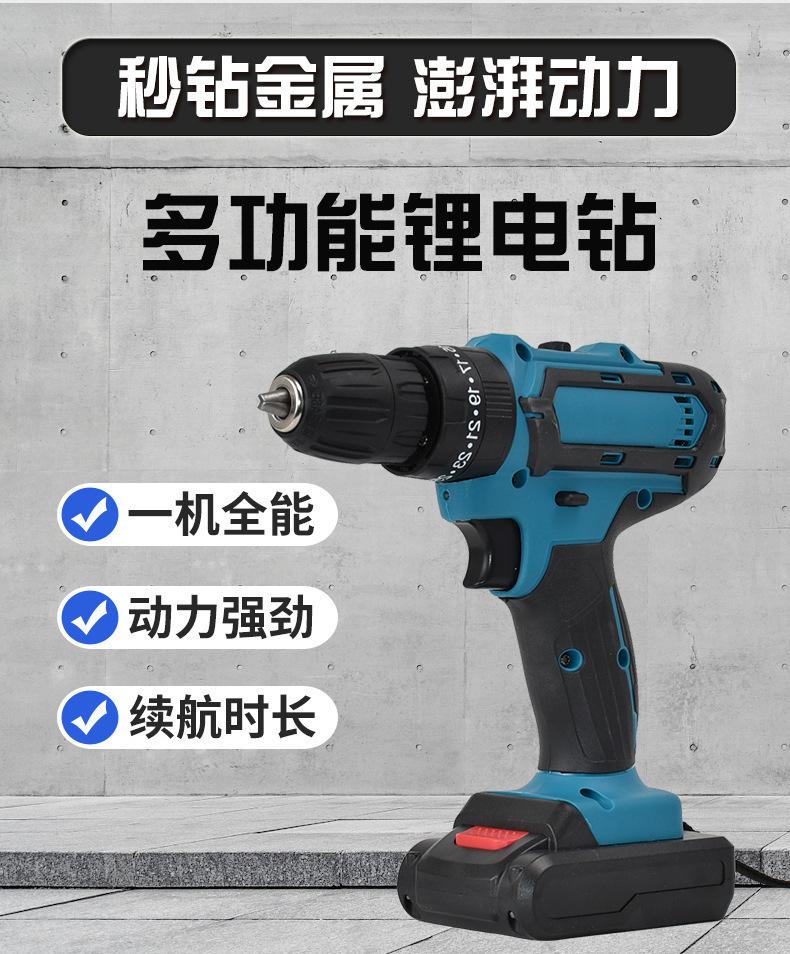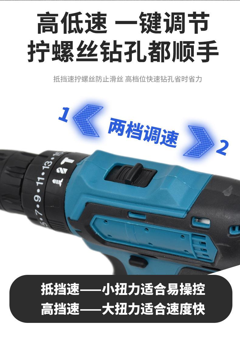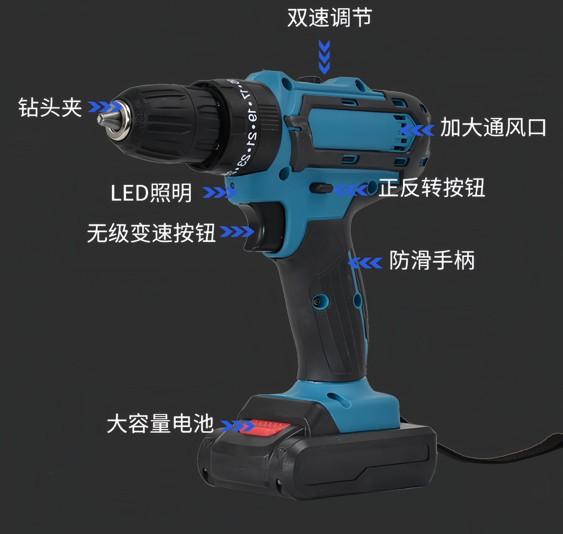Taladro eléctrico de impacto manual transfronterizo, destornillador, taladro eléctrico de litio, taladro multifuncional de doble velocidad, taladro recargable de litio.