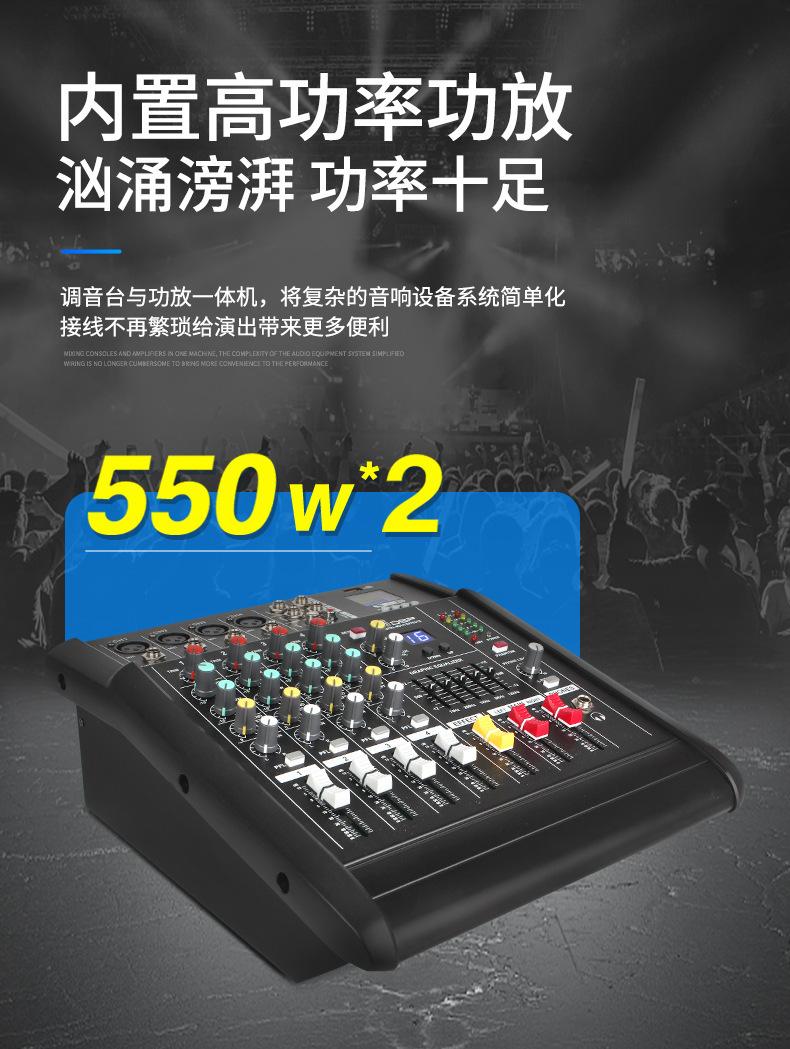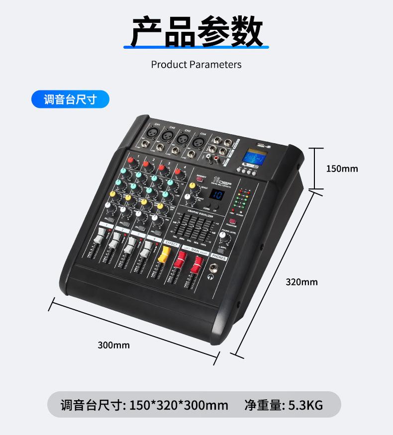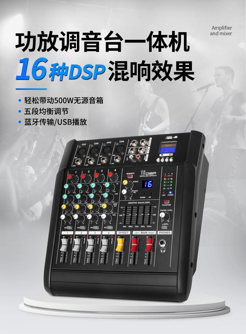 Amplificador mezclador transfronterizo todo en uno con ajuste de reverberación USB, sintonizador profesional de 4 vías para escenarios con Bluetooth