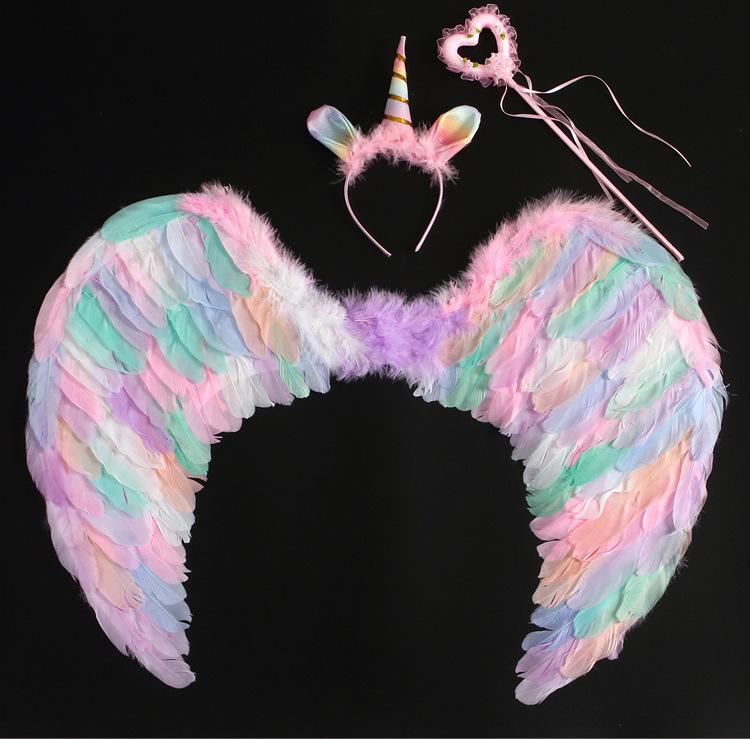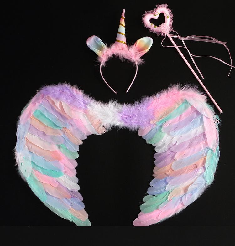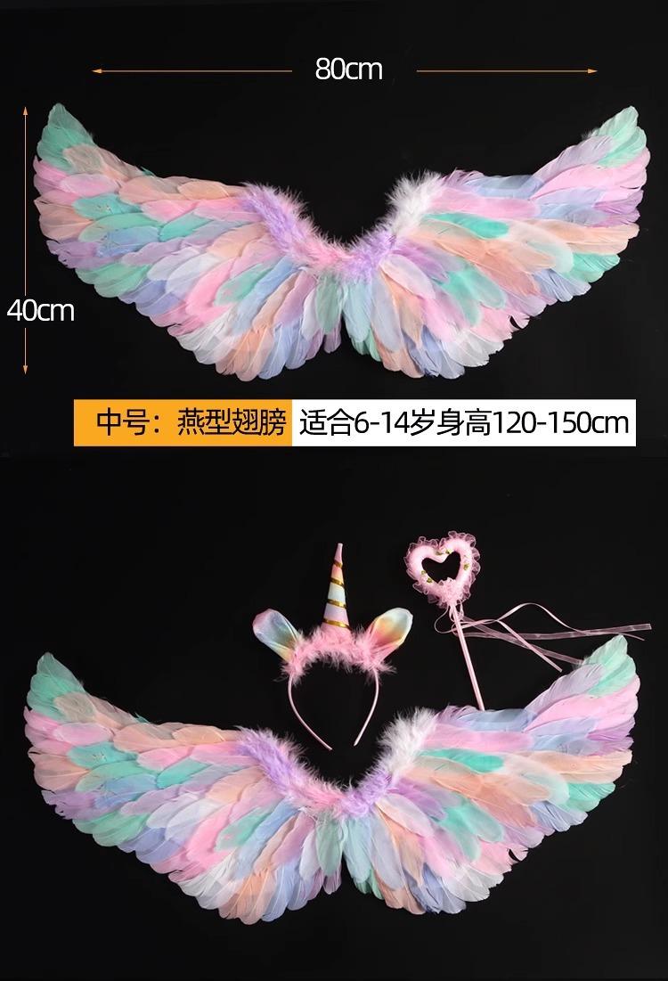 Alas de plumas de ángel de colores para disfrazarse de adultos y niños, elfo, hada, accesorios de escenario para Halloween, 1 de junio