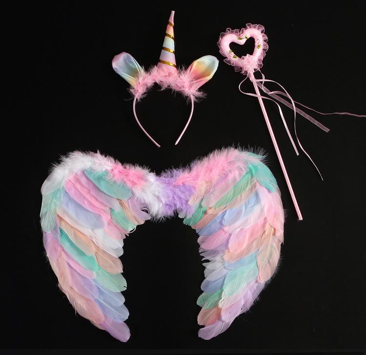 Color 80*60 wings pink fairy stick unicorn head hoop