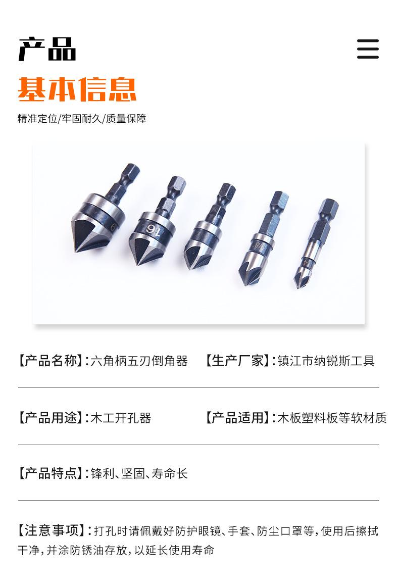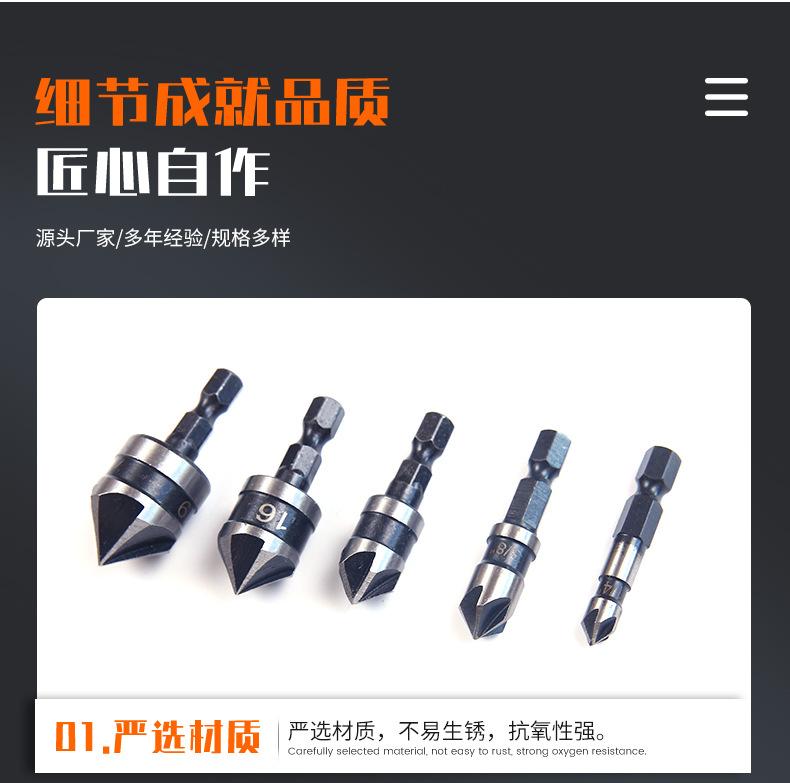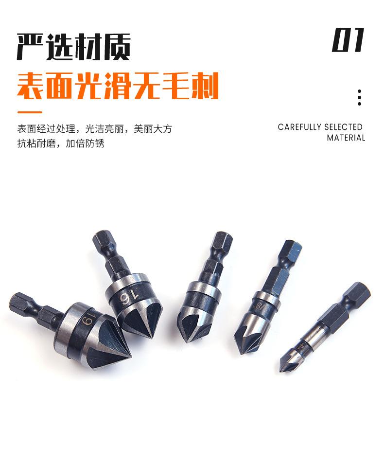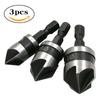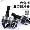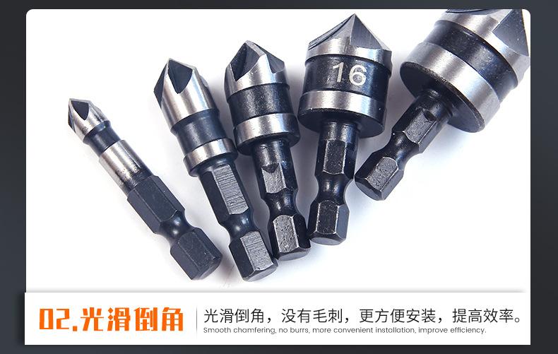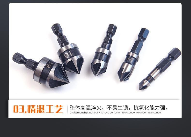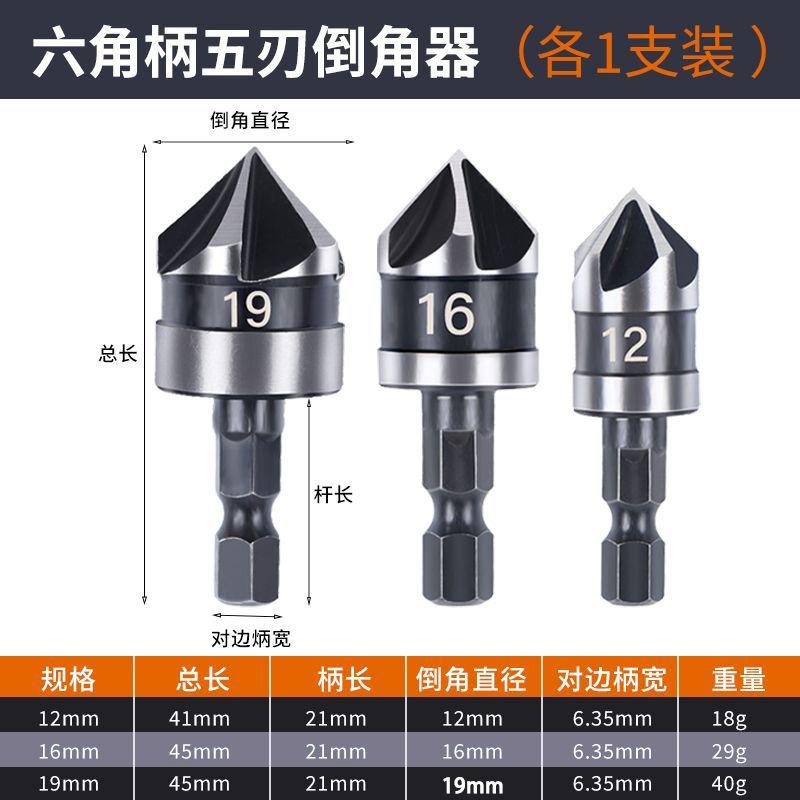 Acero al carbono transfronterizo mango hexagonal de 90 grados chaflanador de cinco hojas juego de tres piezas 12mm19 avellanador negro abridor de agujeros para carpintería