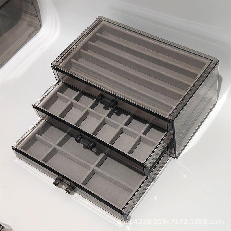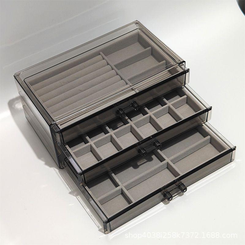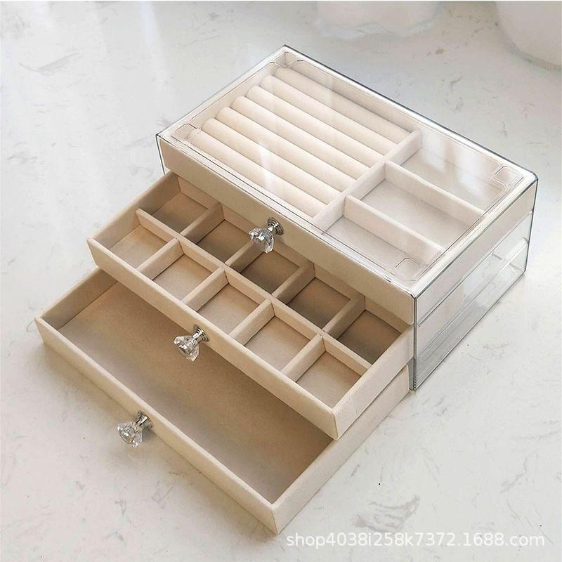 Joyero de franela de tres capas con cajón para guardar pendientes, pulseras y collares, a prueba de polvo.