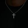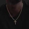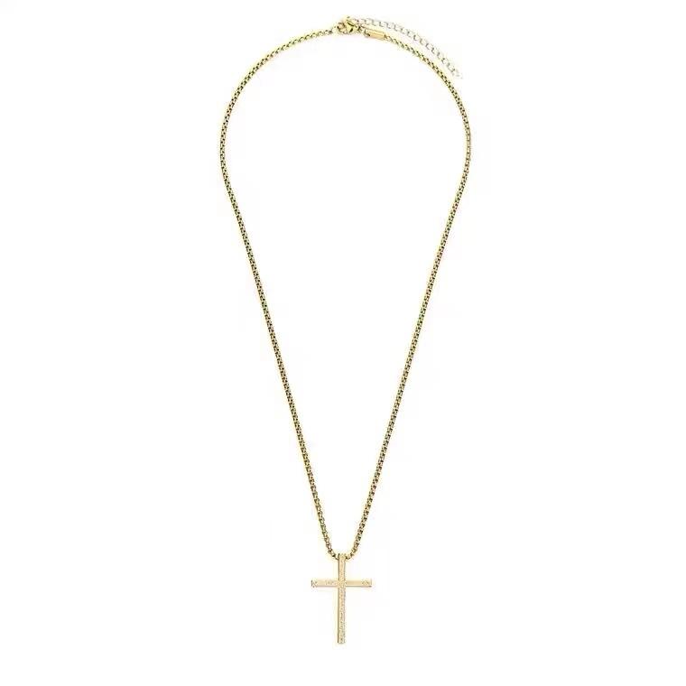 Collar con colgante de cruz pequeña de diamantes estilo americano para hombre, cadena de clavícula dorada, acero de titanio, sencillo y combinable.